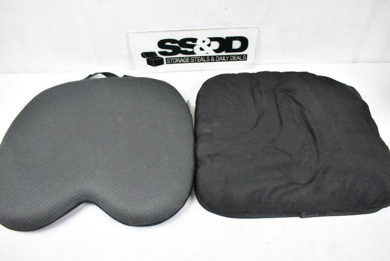 2 Office Chair Seat Cushions. Gray by Enhance Your Journey, Black by Sharper Image