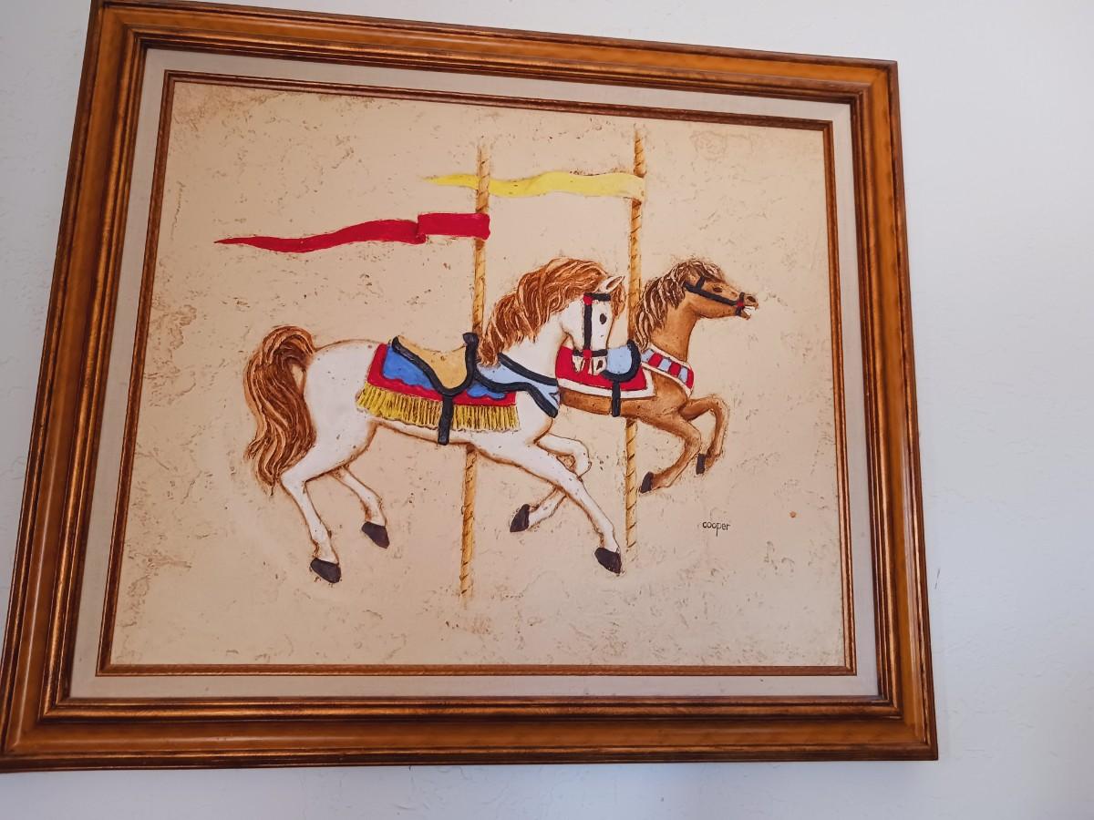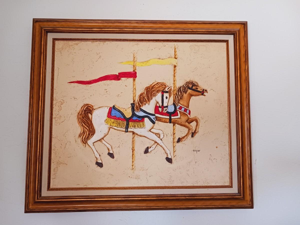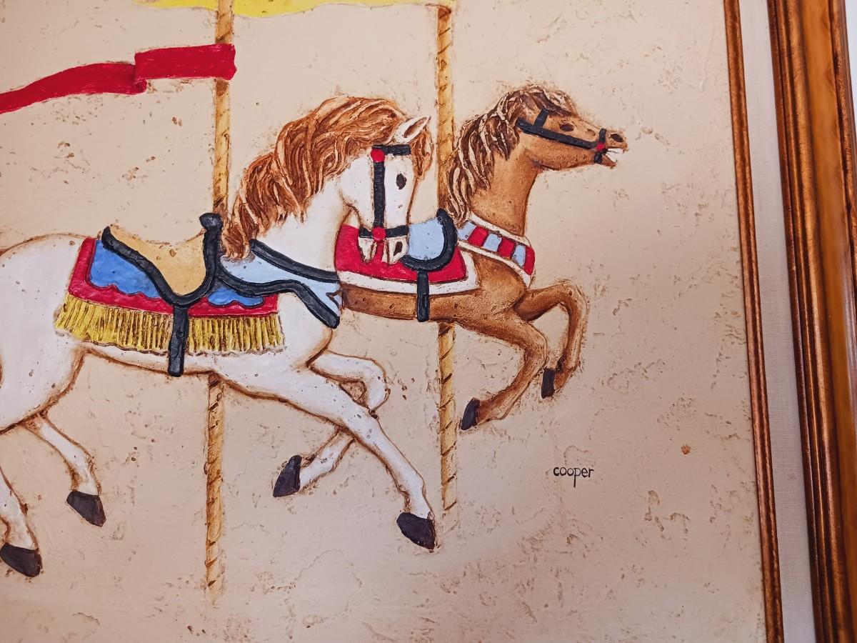 2 OIL PAINTINGS, CAROUSEL HORSES BY COOPER