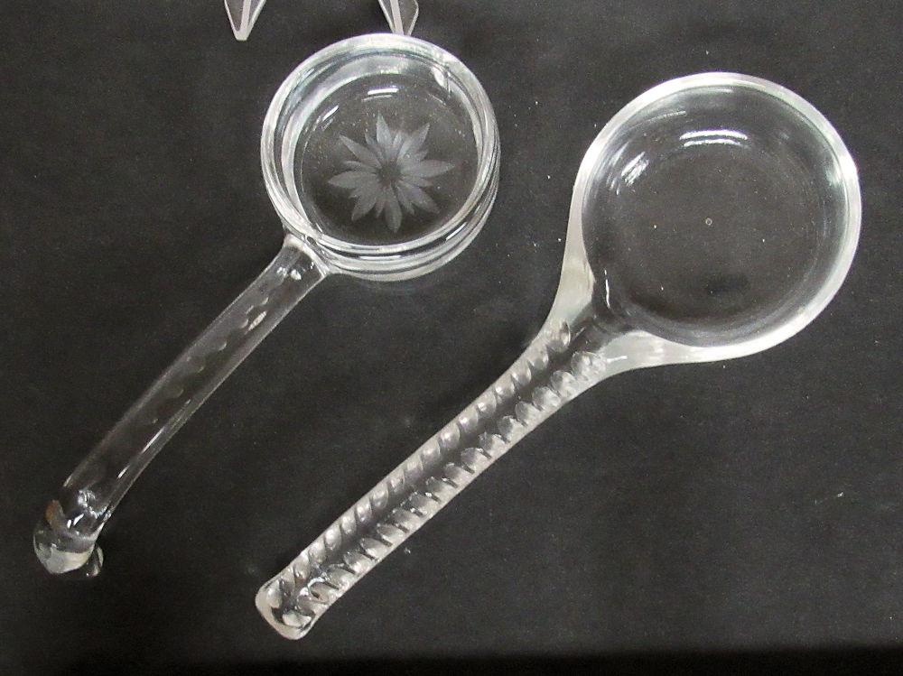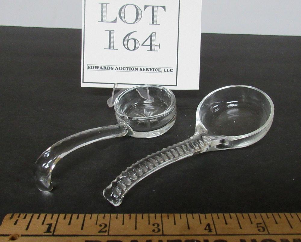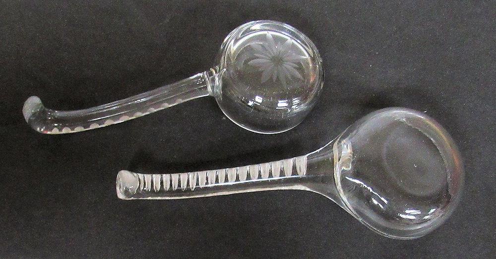 2 Old Clear Glass Ladels, One With Cut in Flower, One with Ribbed Handle