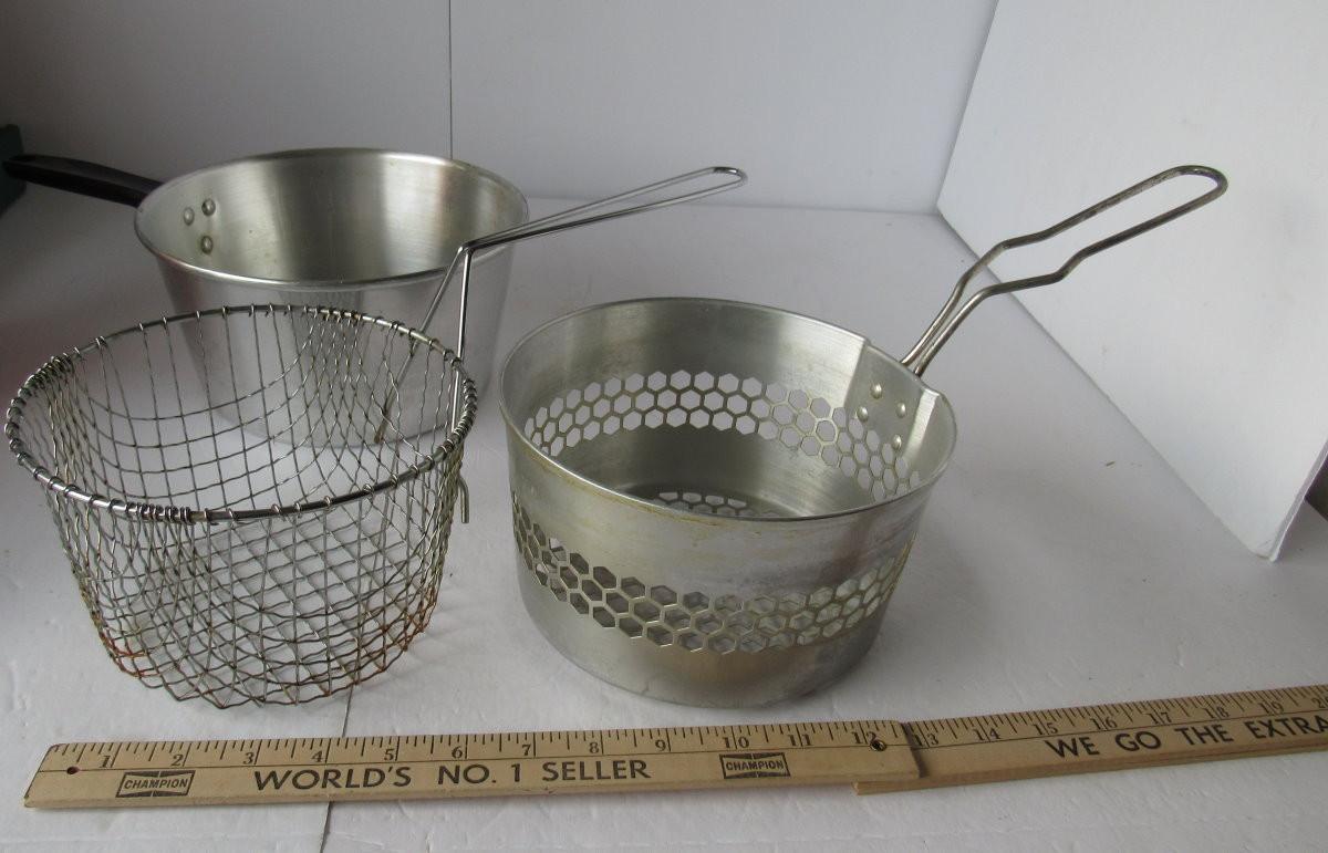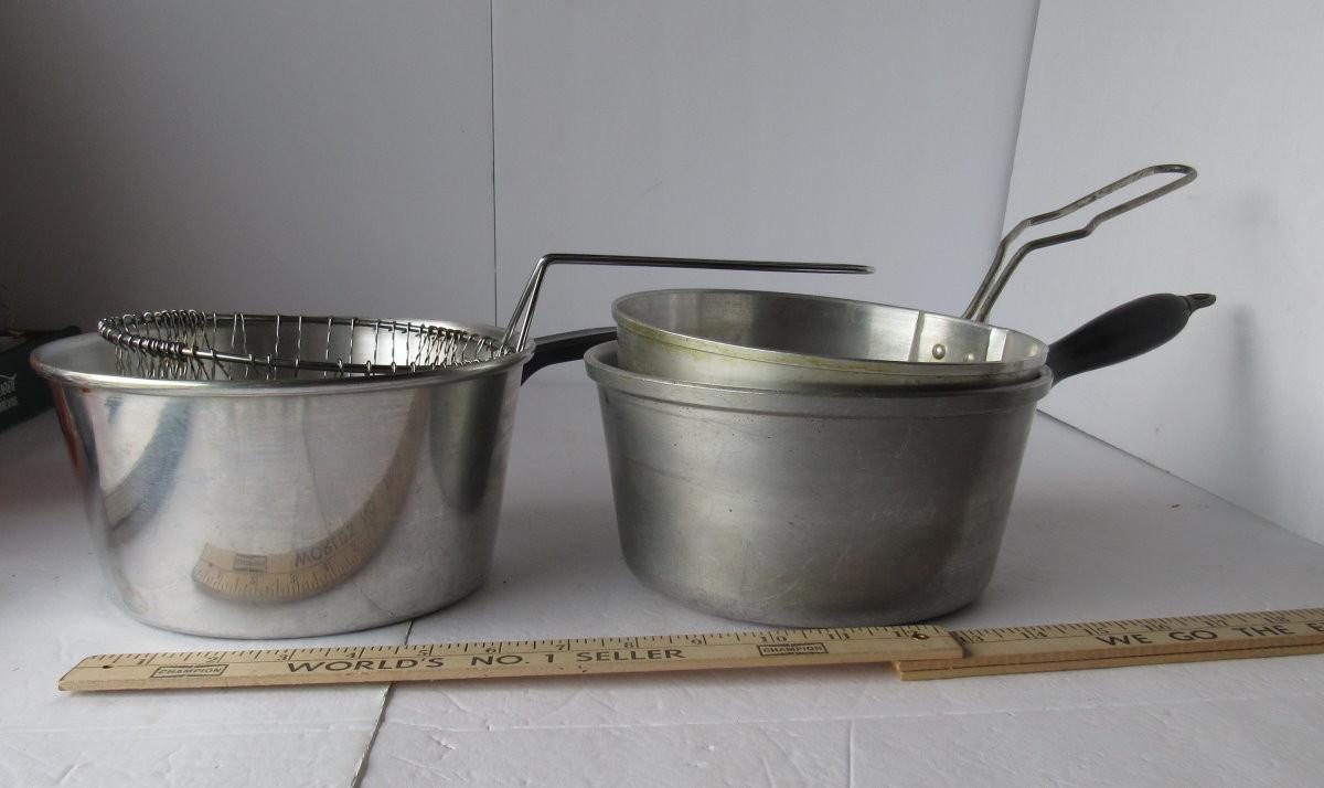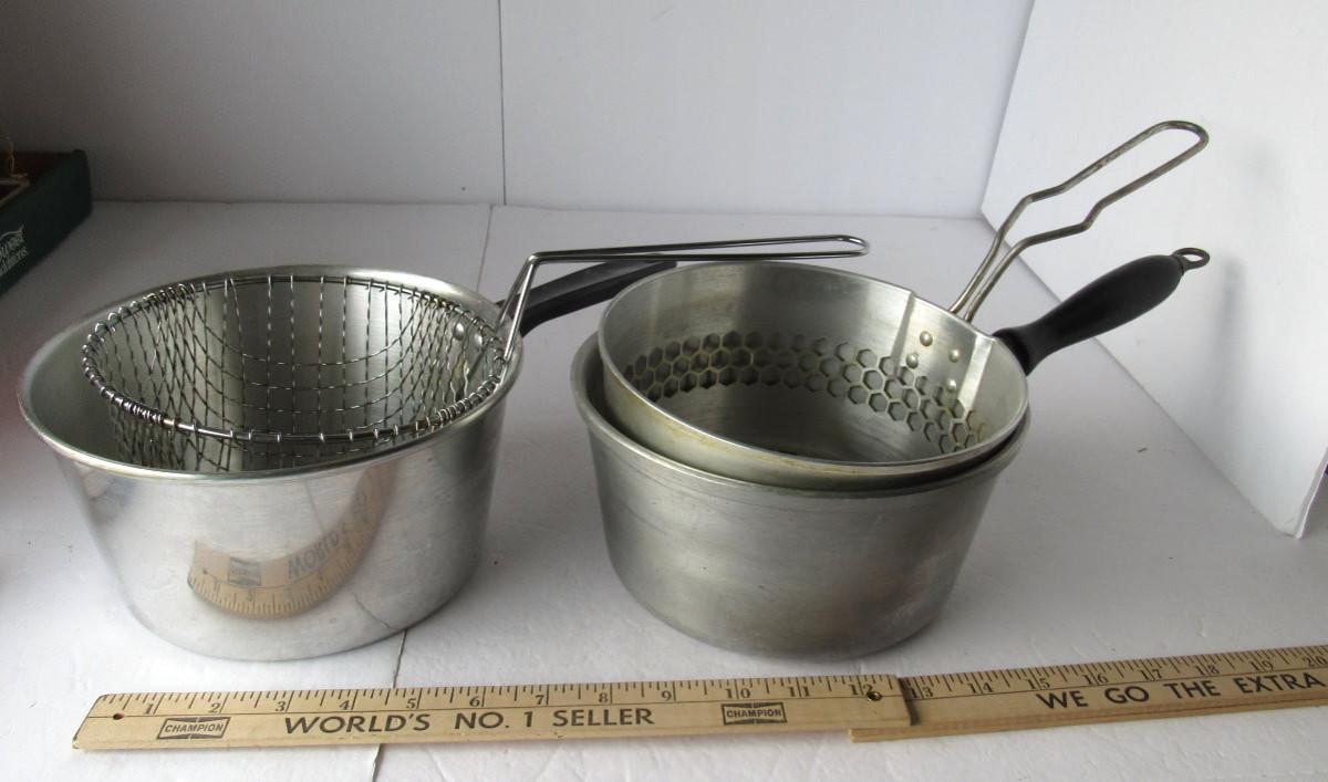 2 Old Deep Frier Sets, One With Nice Sturdy Wood Handle