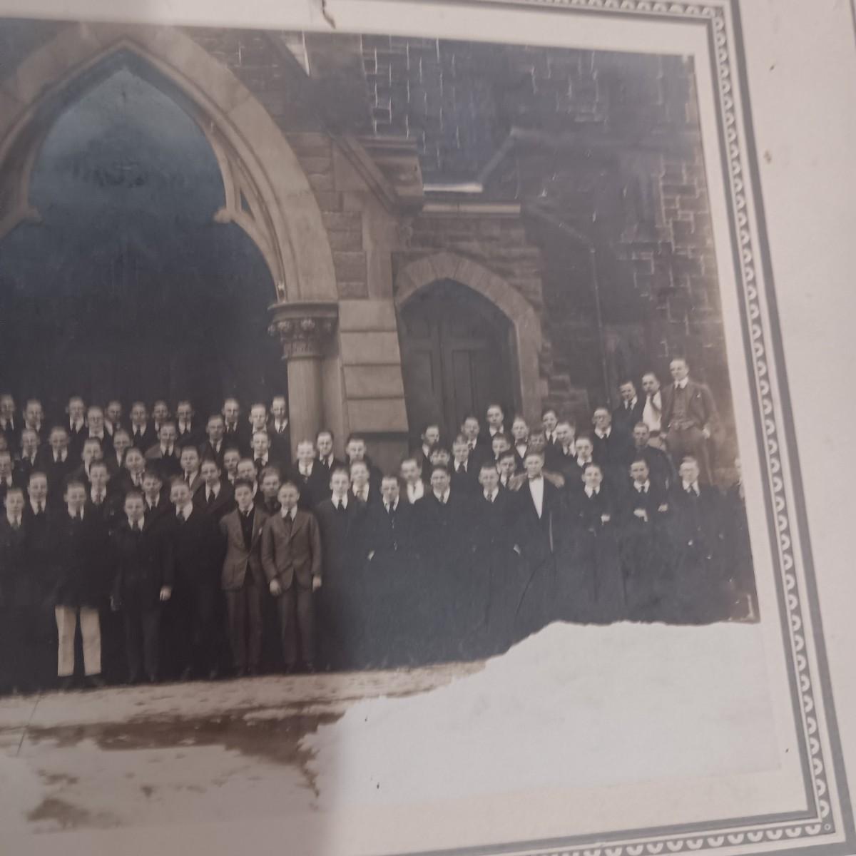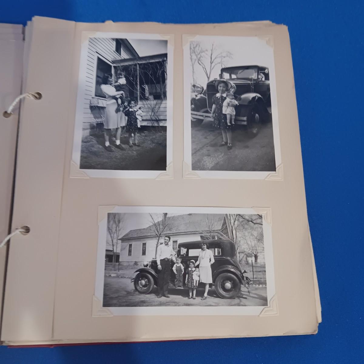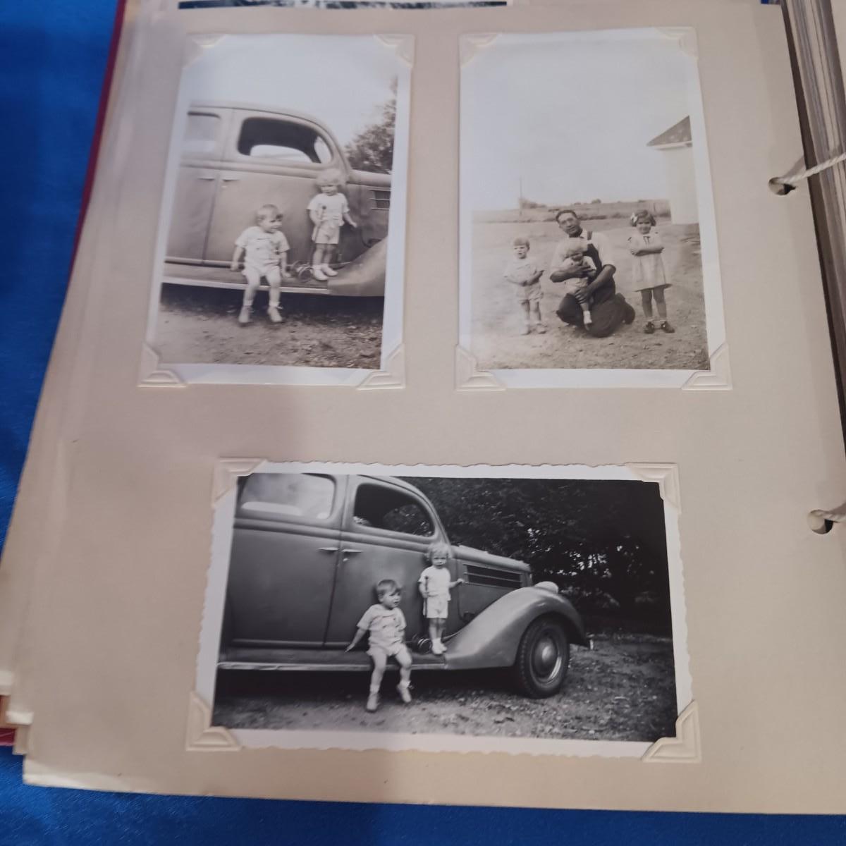 2 OLD GROUP PHOTOS, PHOTO ALBUM FILLED WITH PICTURES AND A SCRAP BOOK WITH A FEW PAGES FILLED