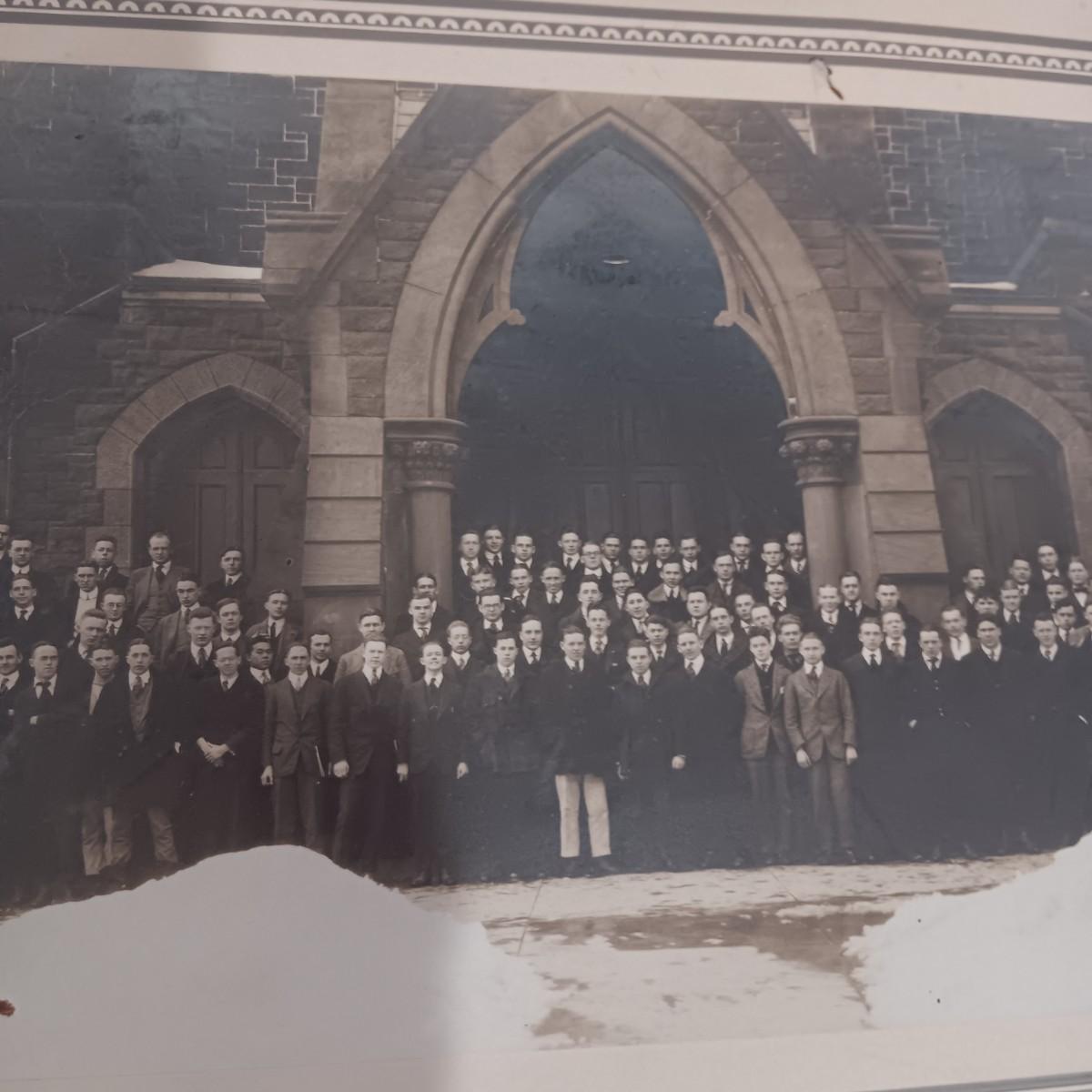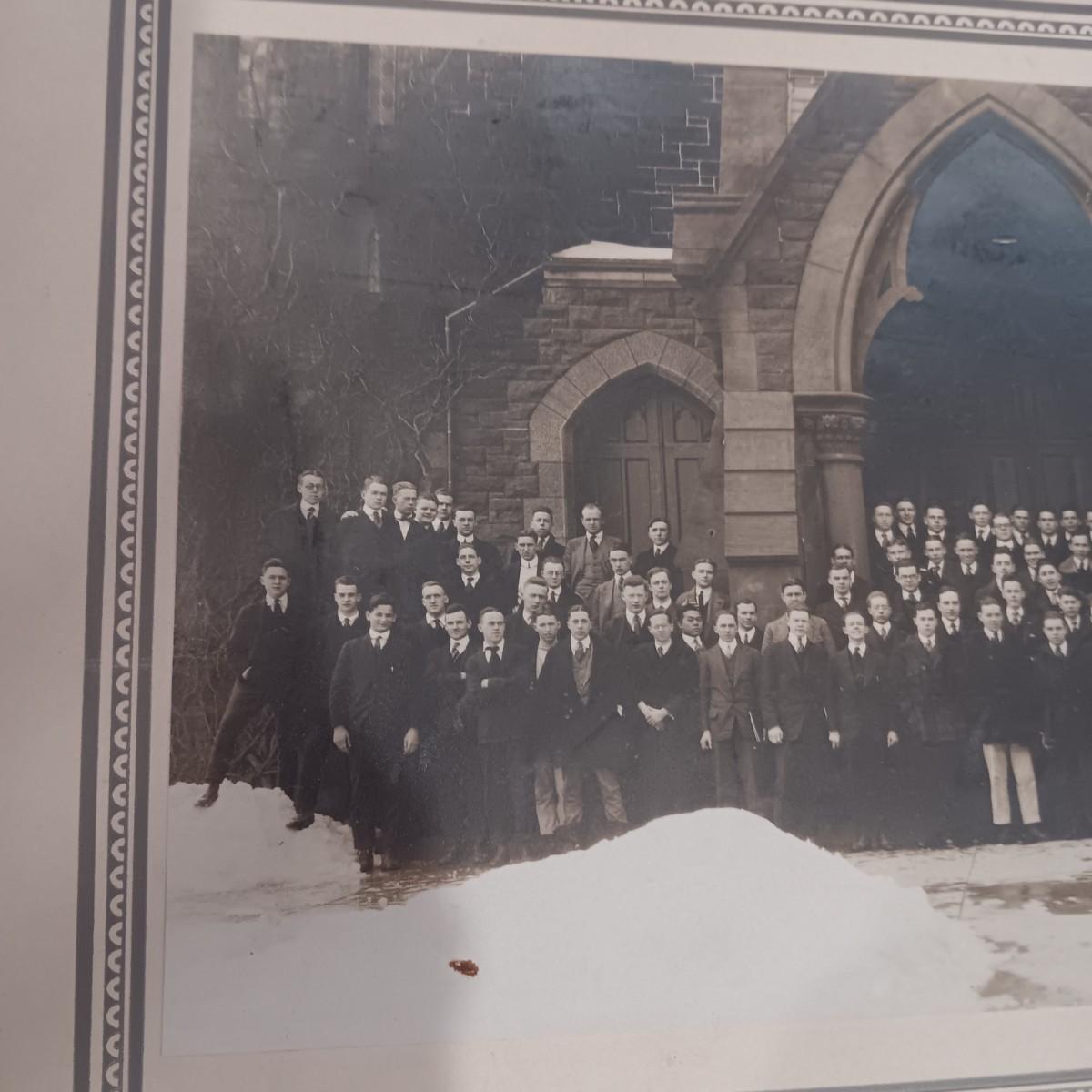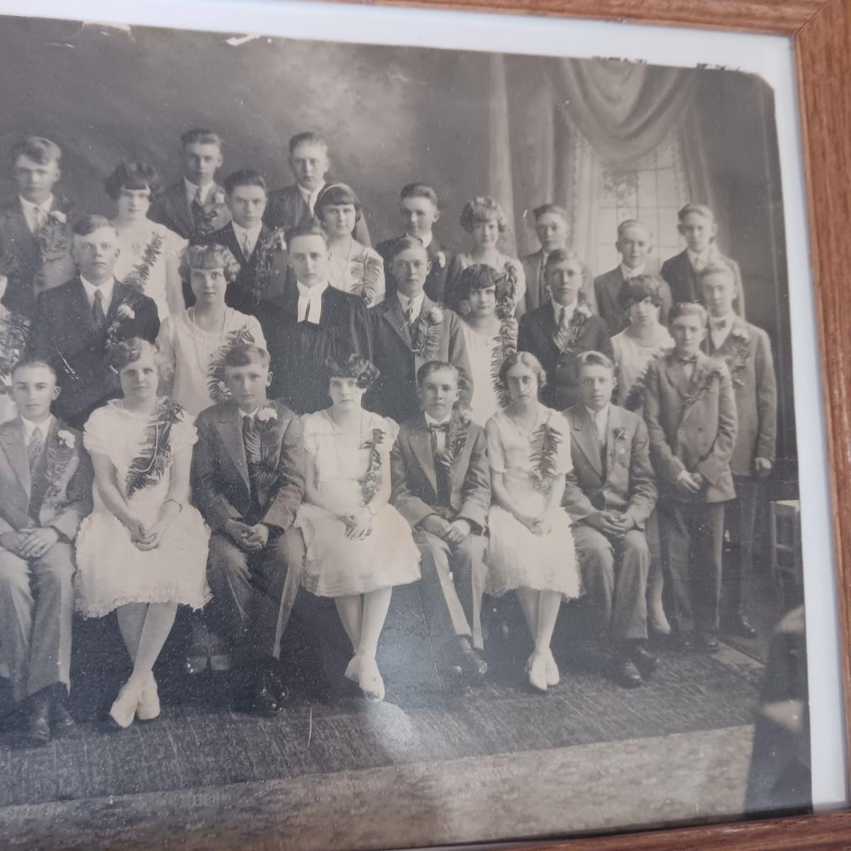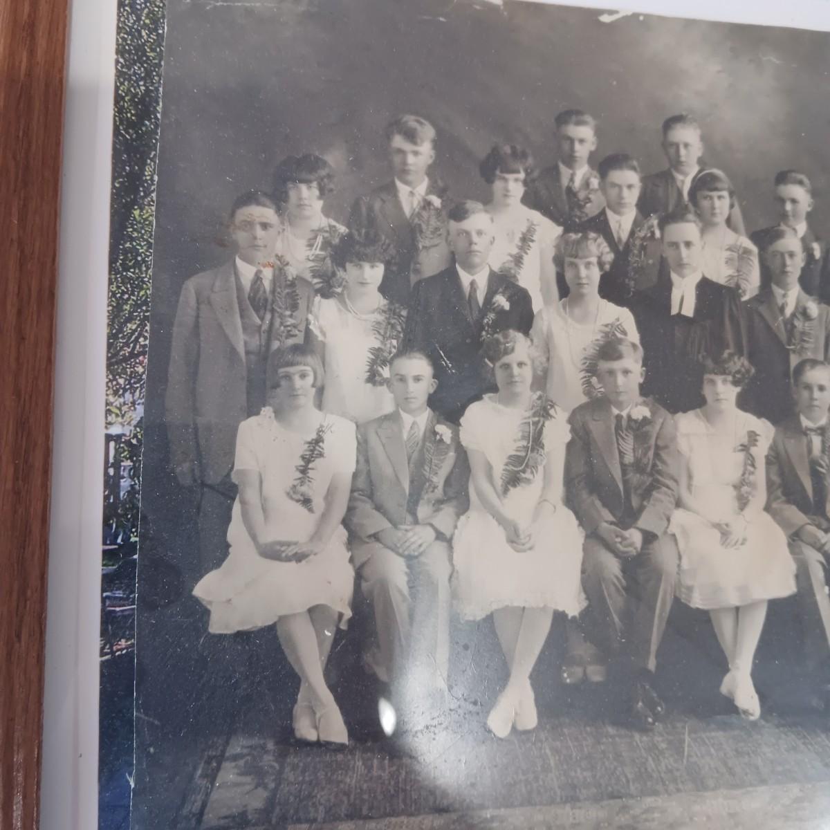 2 OLD GROUP PHOTOS, PHOTO ALBUM FILLED WITH PICTURES AND A SCRAP BOOK WITH A FEW PAGES FILLED