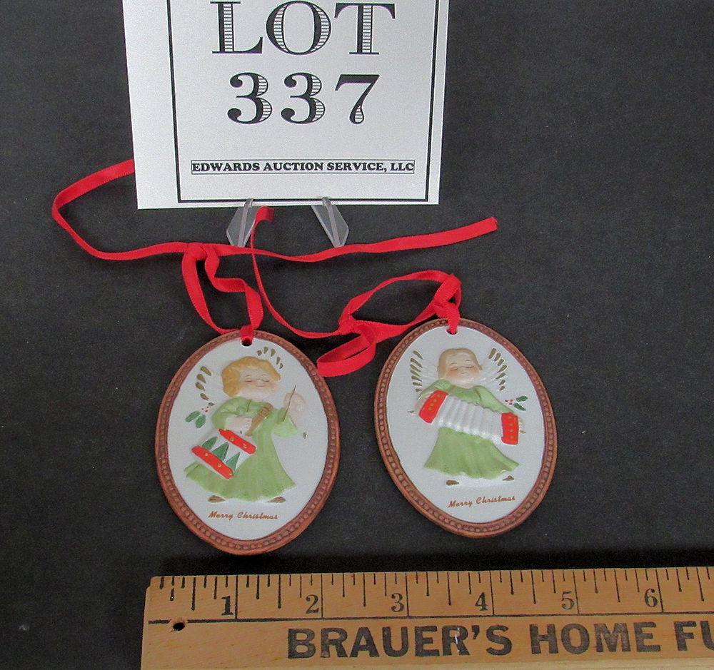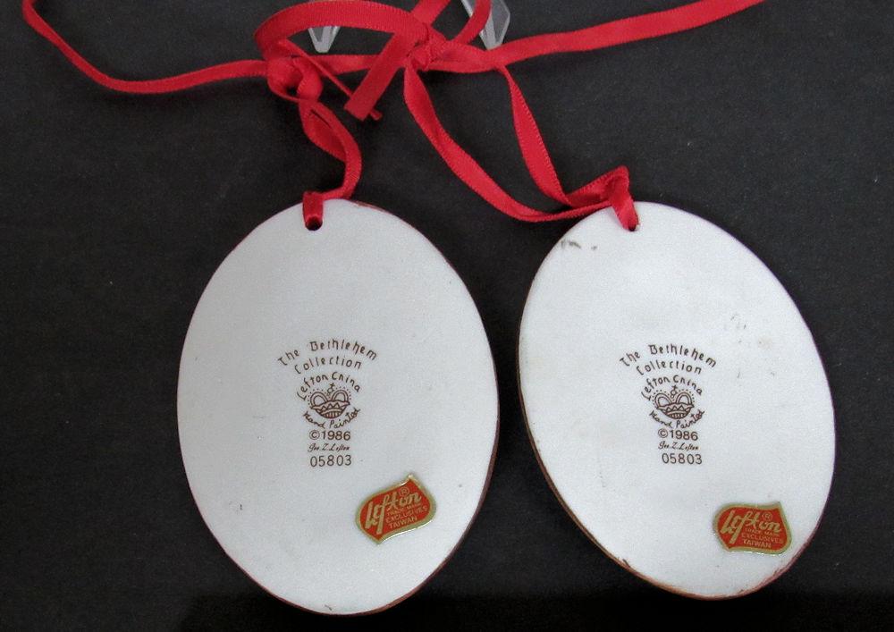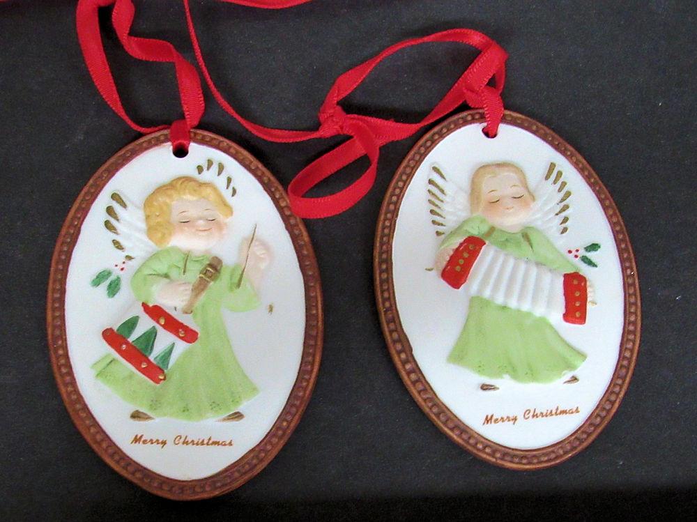 2 Old Lefton Bisque Angel Christmas Ornaments Bethlehem Collection