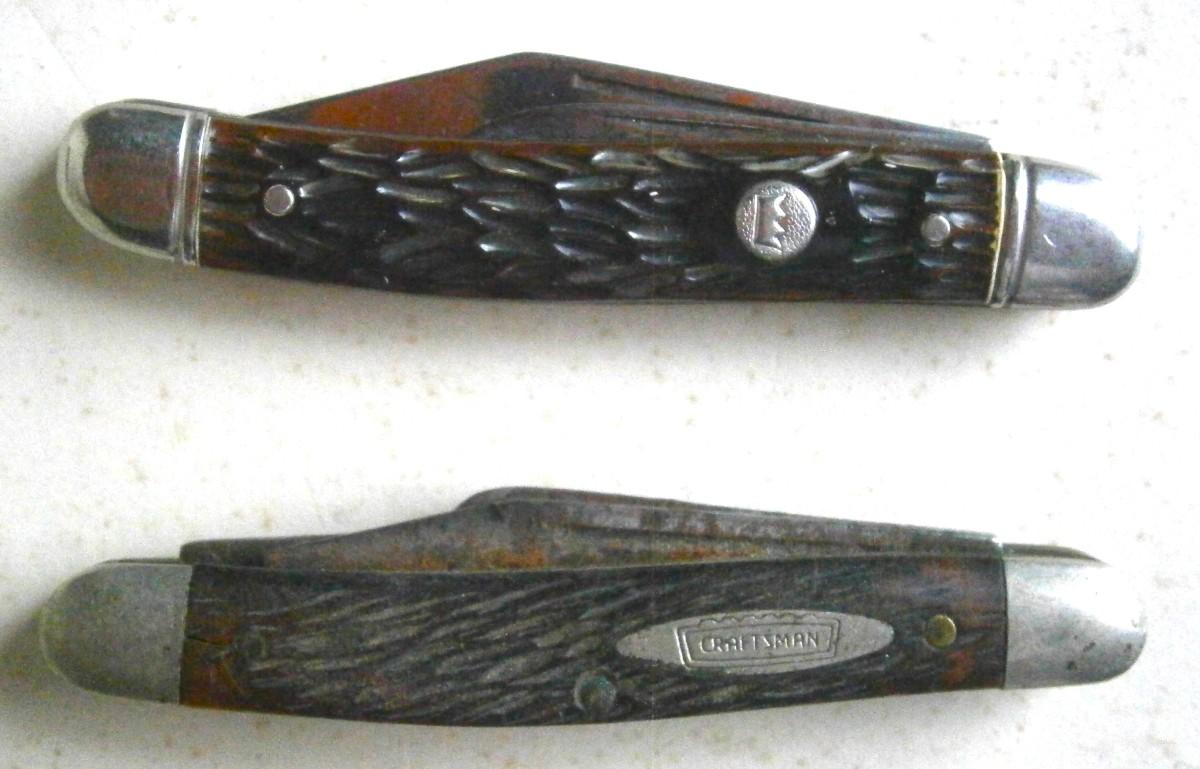 2 Old Pocket Knives by Craftsman and Imperial, 2 3/4 in. long (closed), stag horn handles.,