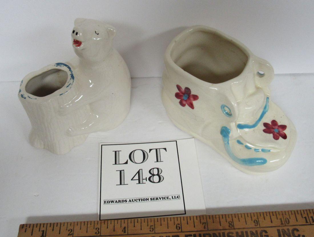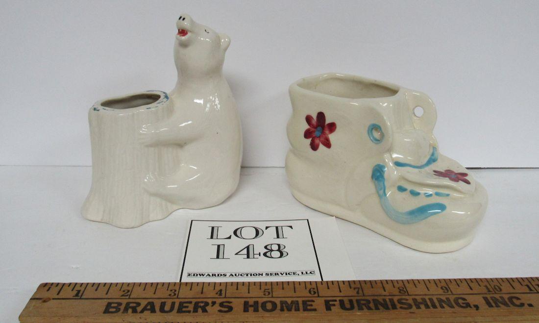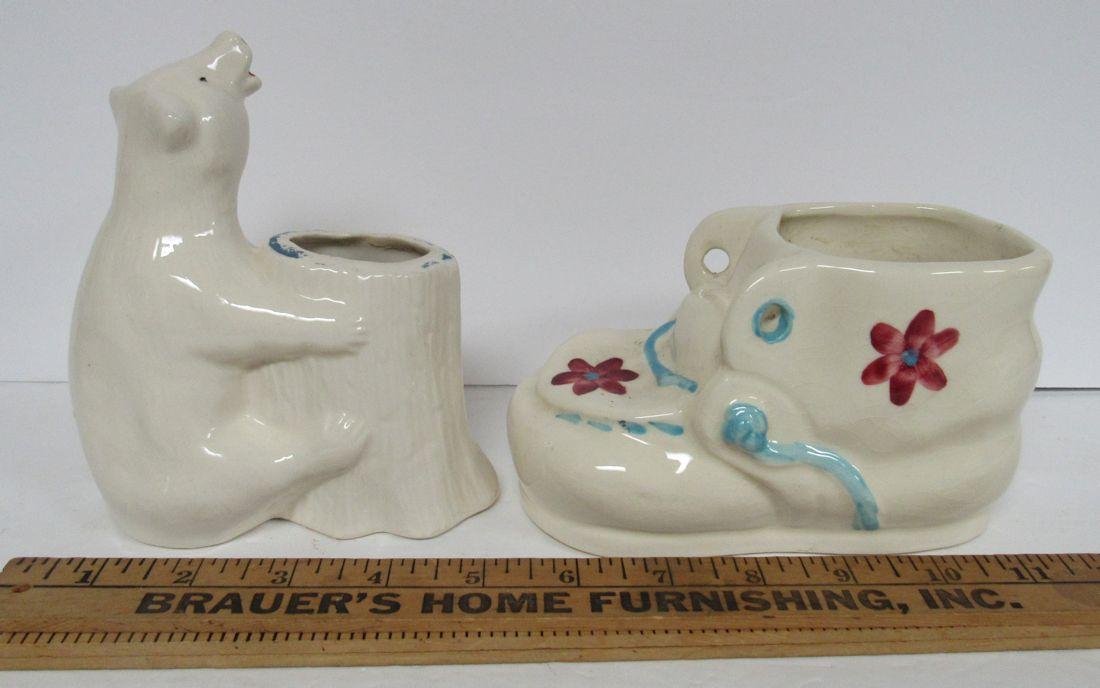 Bear has paint wear, shoe is ok. Heavy to ship. Shipping is available at shipping cost plus $5.00 handling fee on up to 6 lots, $10.00 handling fee on 7 or more lots or two boxes. $15.00 handling fee on 3 boxes. Helps cover shipping materials and labor cost.