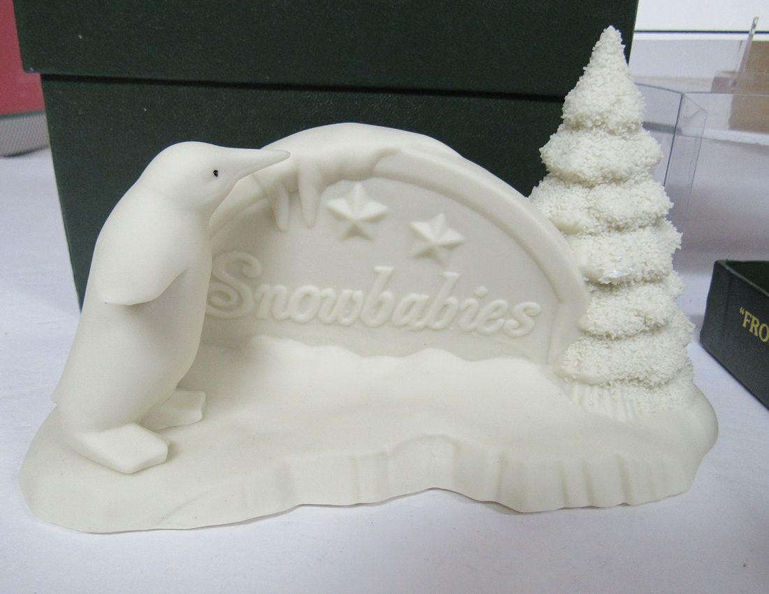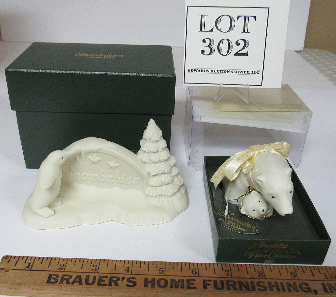 2 Older Dept 56 Snowbaby Pieces: Sign and Polar Bear Ornament