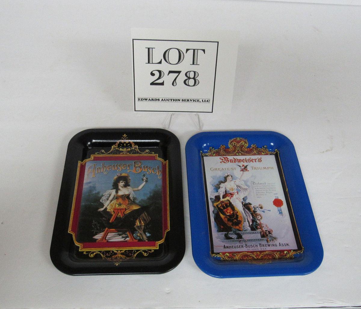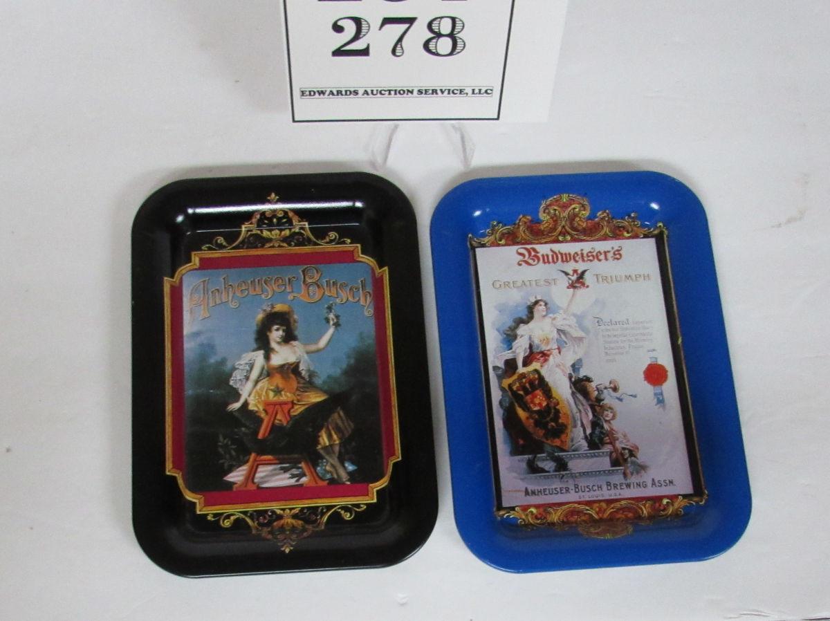 2 Older Metal Budweiser Anheuser Busch Tip Trays