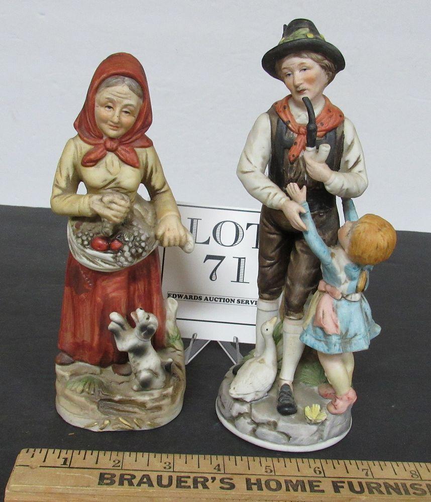Lady is by Homeco, good condition, man and girl is from Lenwile china, good condition. Shipping is available at shipping cost plus $5.00 handling fee on up to 8 lots, $10.00 handling fee on 9 or more lots or two boxes.