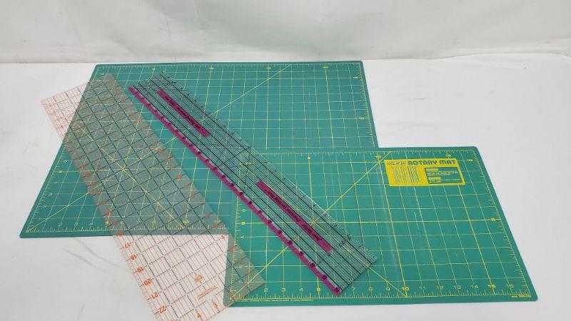 2 OLFA Rotary Mats & 2 Plastic Precision Rulers