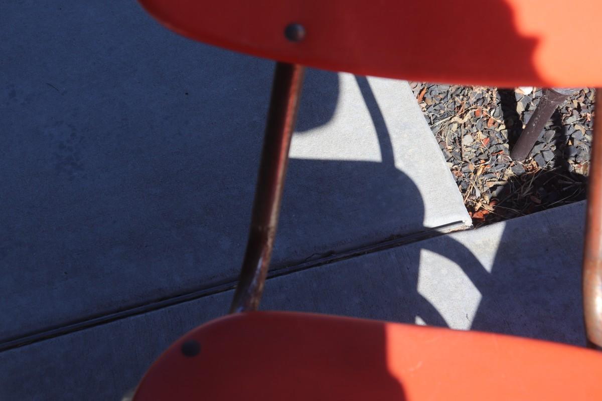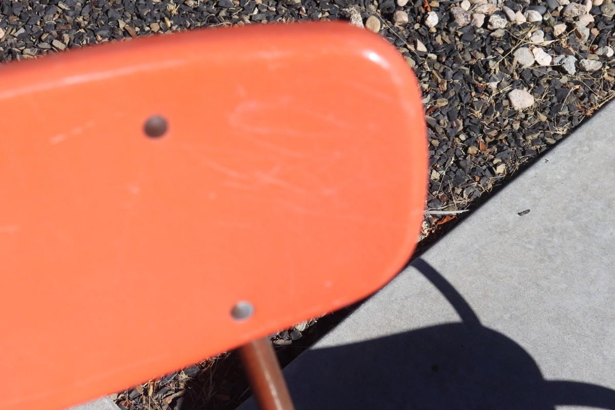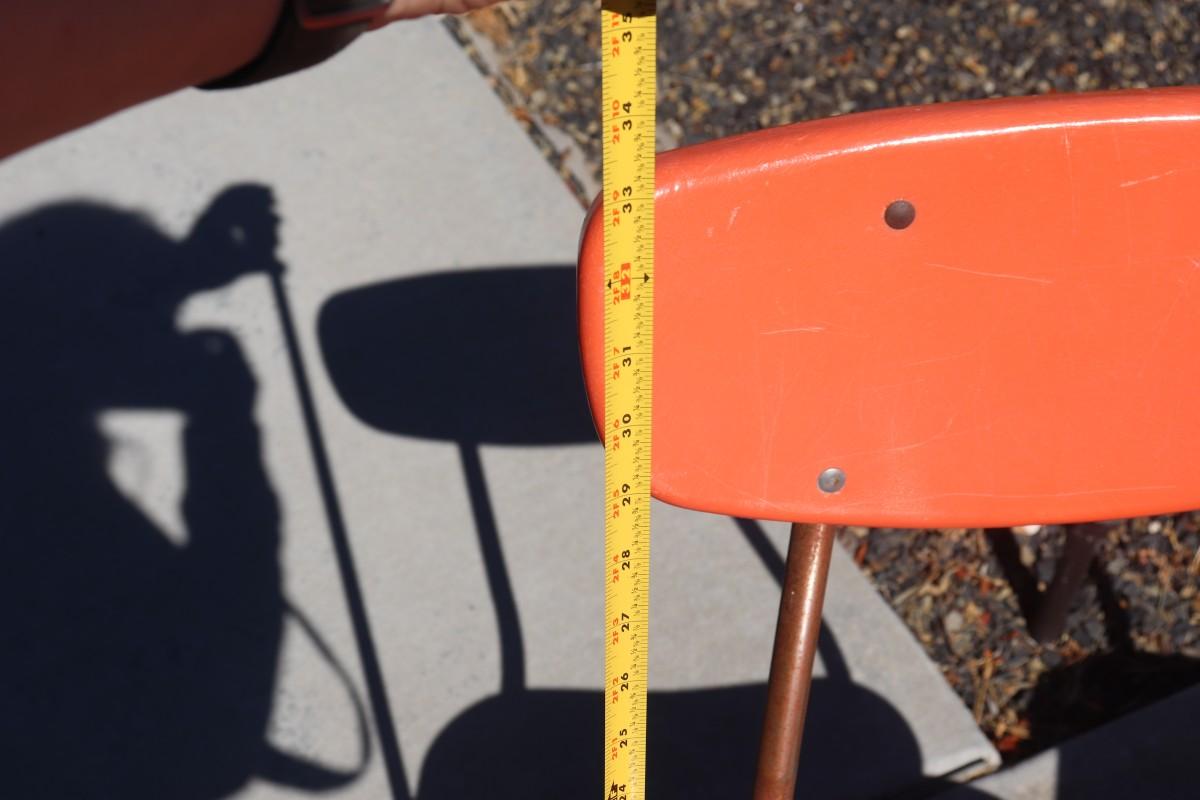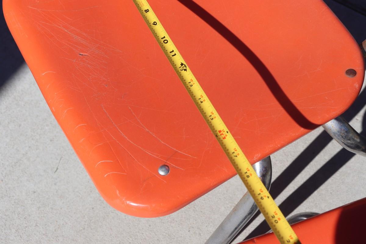 A pair of bright orange chairs designed for school-aged children, ideal for playrooms, study areas, or children's rooms.