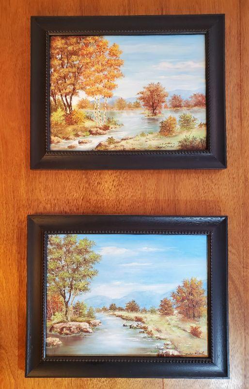 x2 Original Oil Landscape Paintings on Canvas Board (framed) 15"x19" (both)