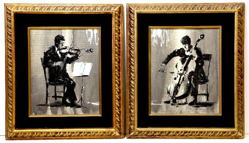 2 Original Oil Paintings on Canvas with Musicians Signed by Artist