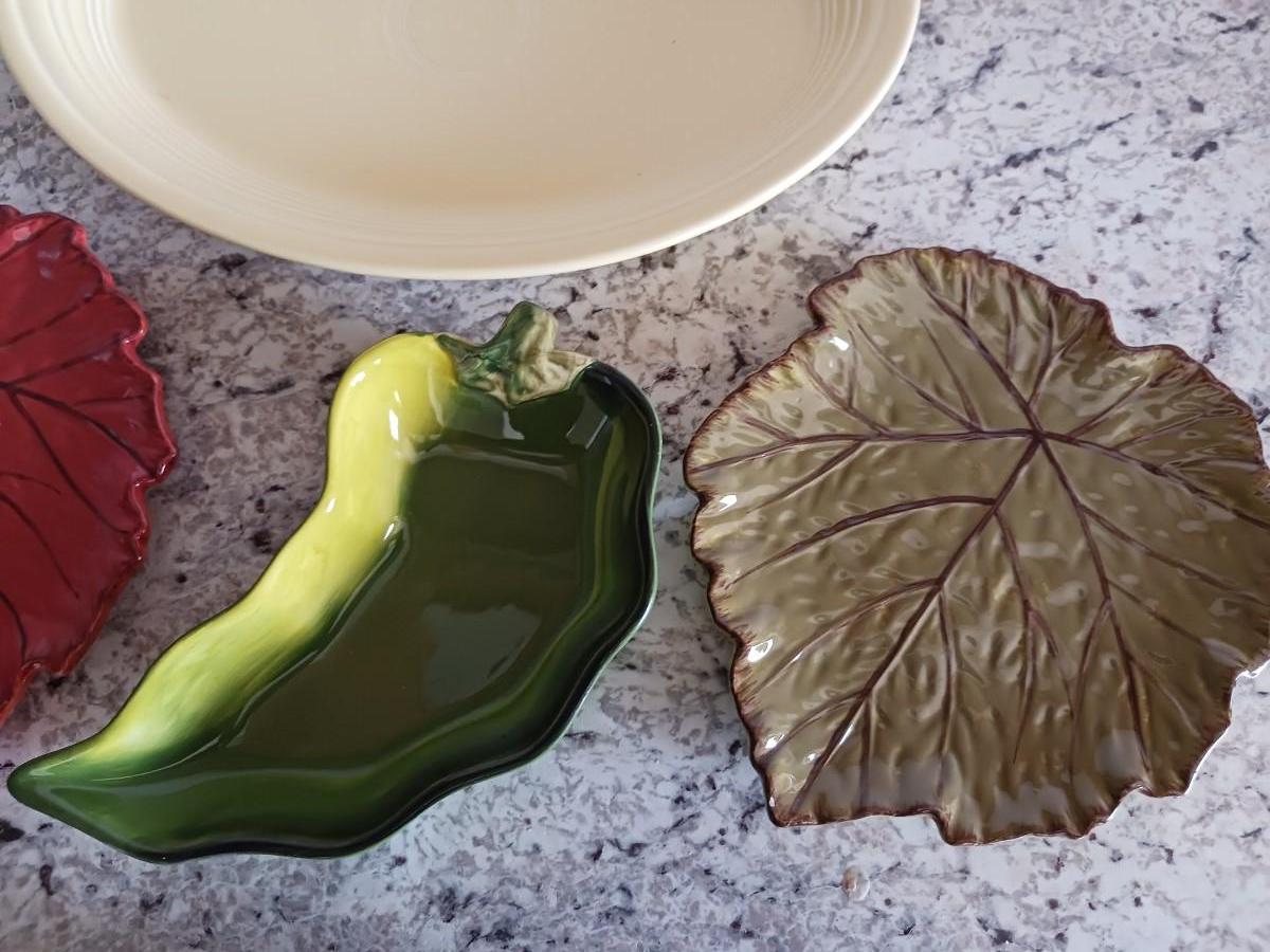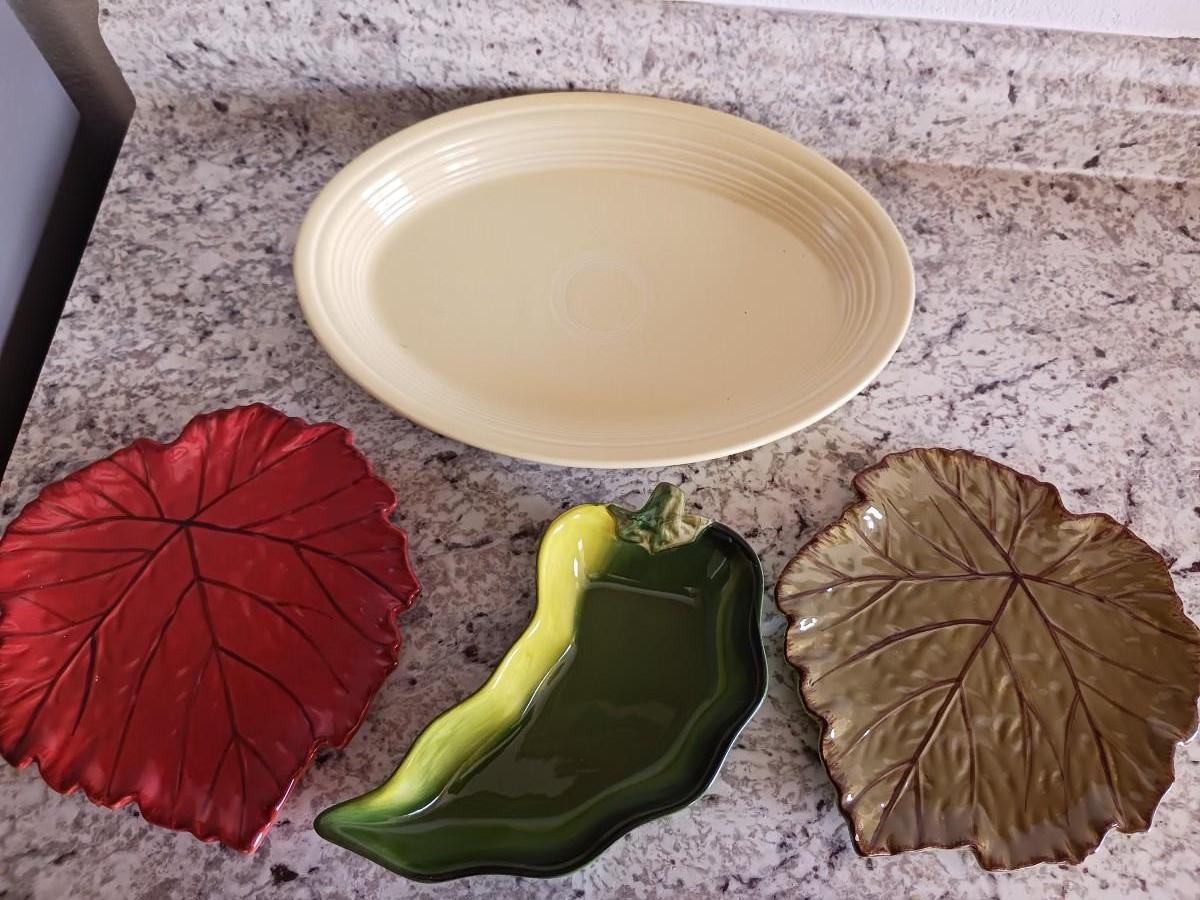 2 OVAL PLATTERS AND 3 LEAF SIDE PLATES