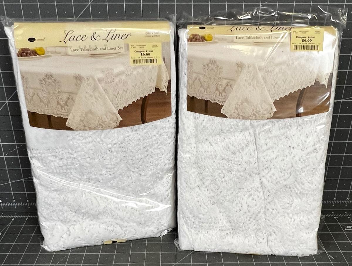 2 Oval White Lace Table Cloth