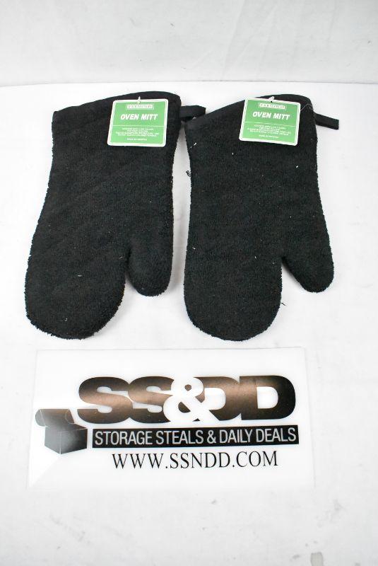 2 Oven Mitts, Black - New
