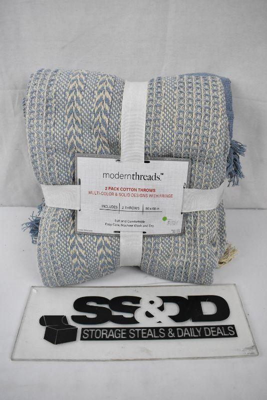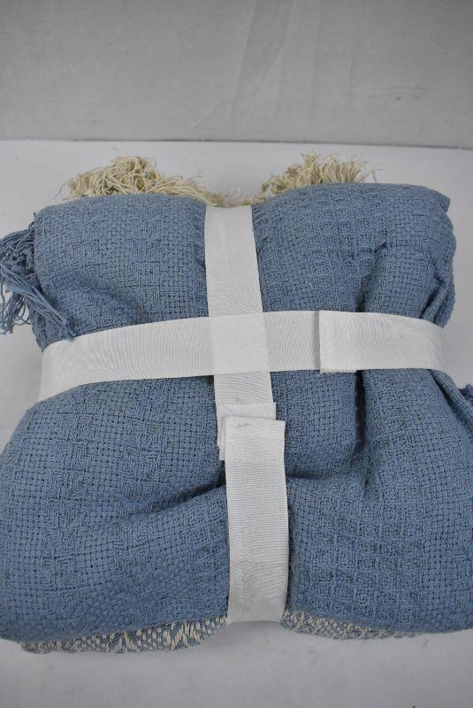 2 pack Blue Blankets, Amrapur Batik 100% Cotton Throw w/ Fringe, 50" x 60" - New