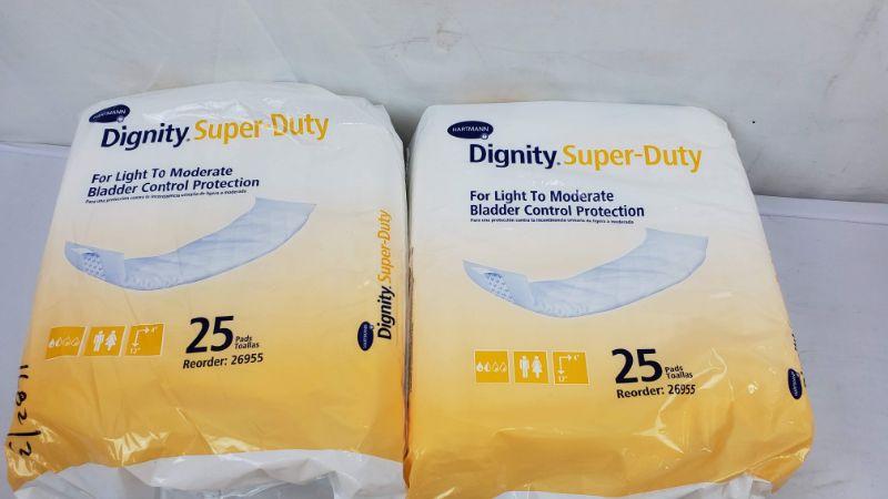 2 Package of 25 Pads, Dignity Super-Duty, For Light to Moderate Bladder Control Protection - New