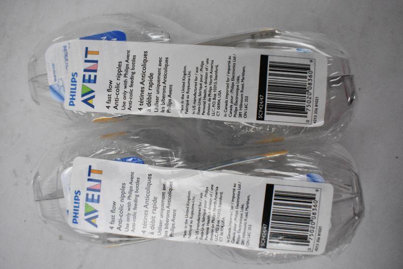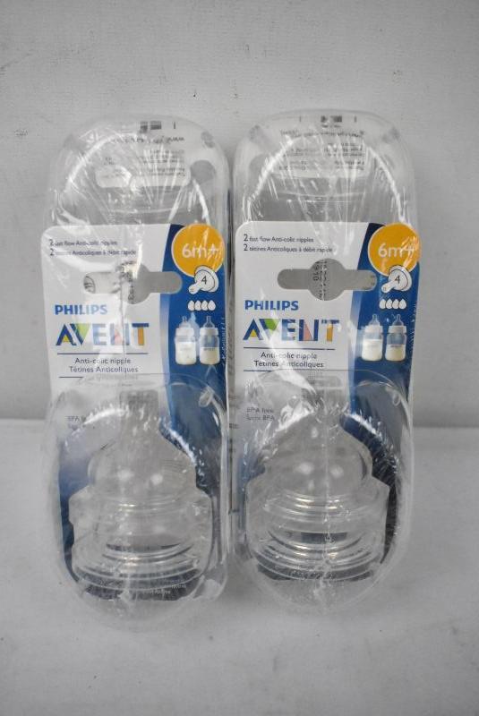 2 Packages of 4, 8 Total, Philips Avent Anti-colic Bottle, Fast Flow Nipple - New