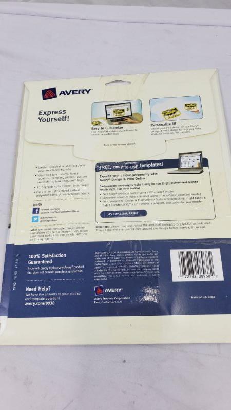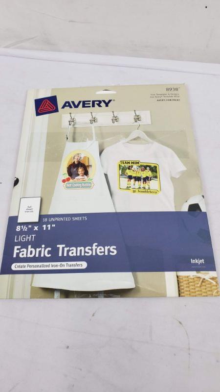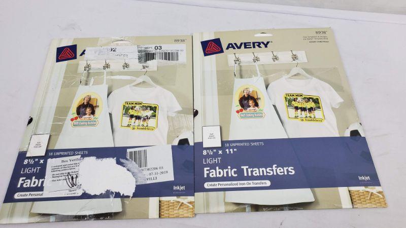 2 Packages of Avery 8.5" x 11", Fabric Transfers, 18 Unprinted Sheets Each - New