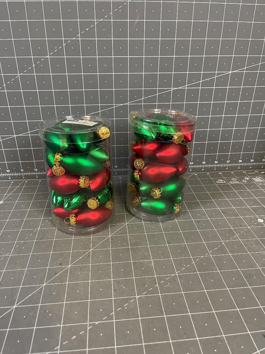 2 Packages of Holiday Home Ornaments Glass Light Bulb Shape
