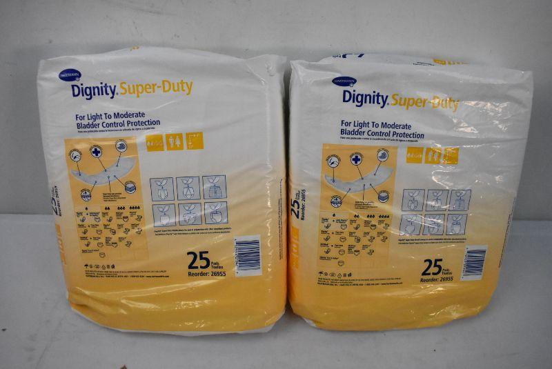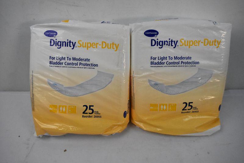 Two Packs of Hartmann Dignity Super-Duty 25 Pads (50 Total), For Light to Moderate Bladder Control Protection - New