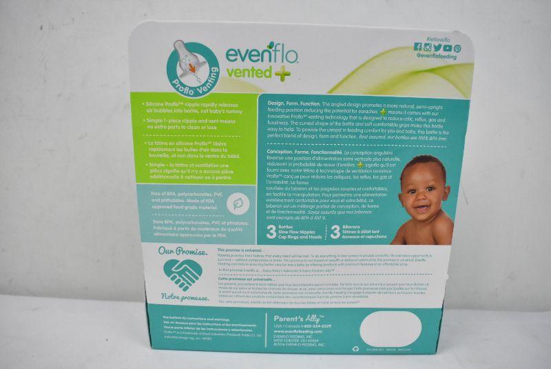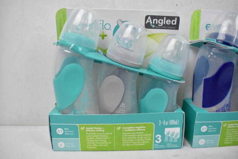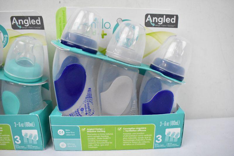 2 Packs of Three Evenflo Bottles, Vented and Angled - New