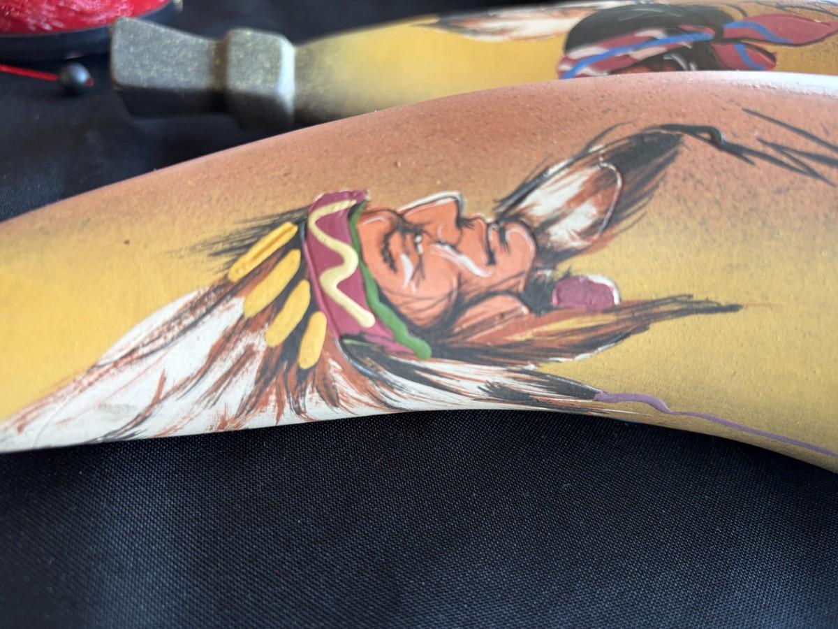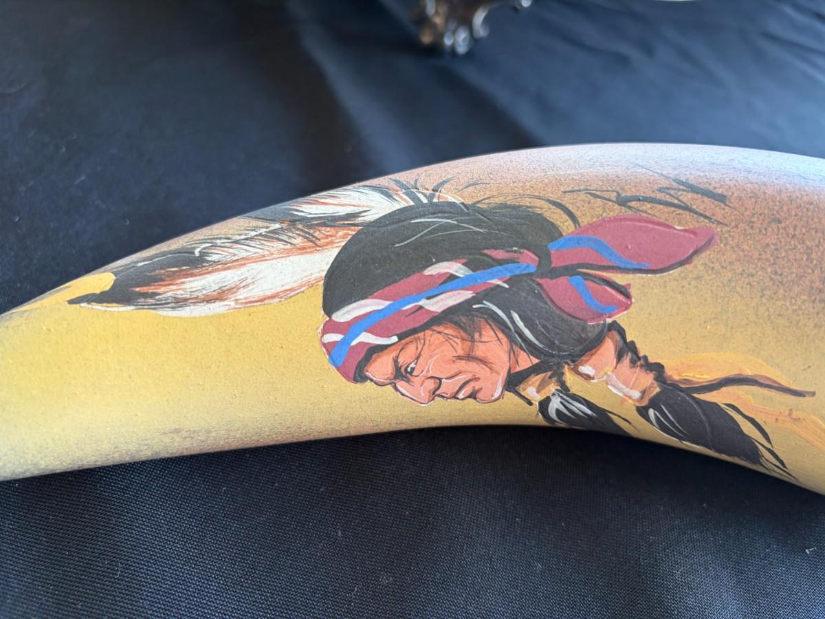 2 painted ceramic horns