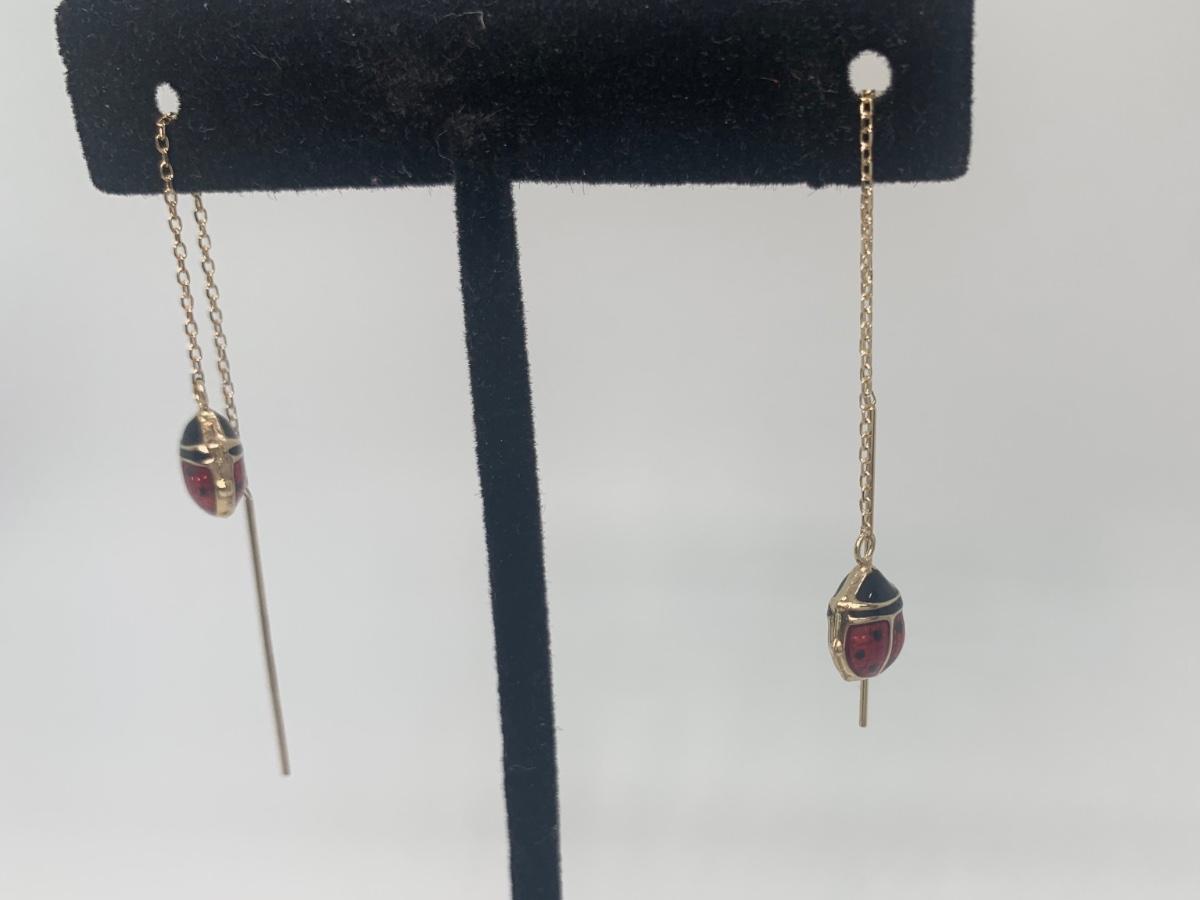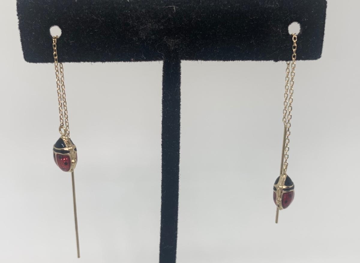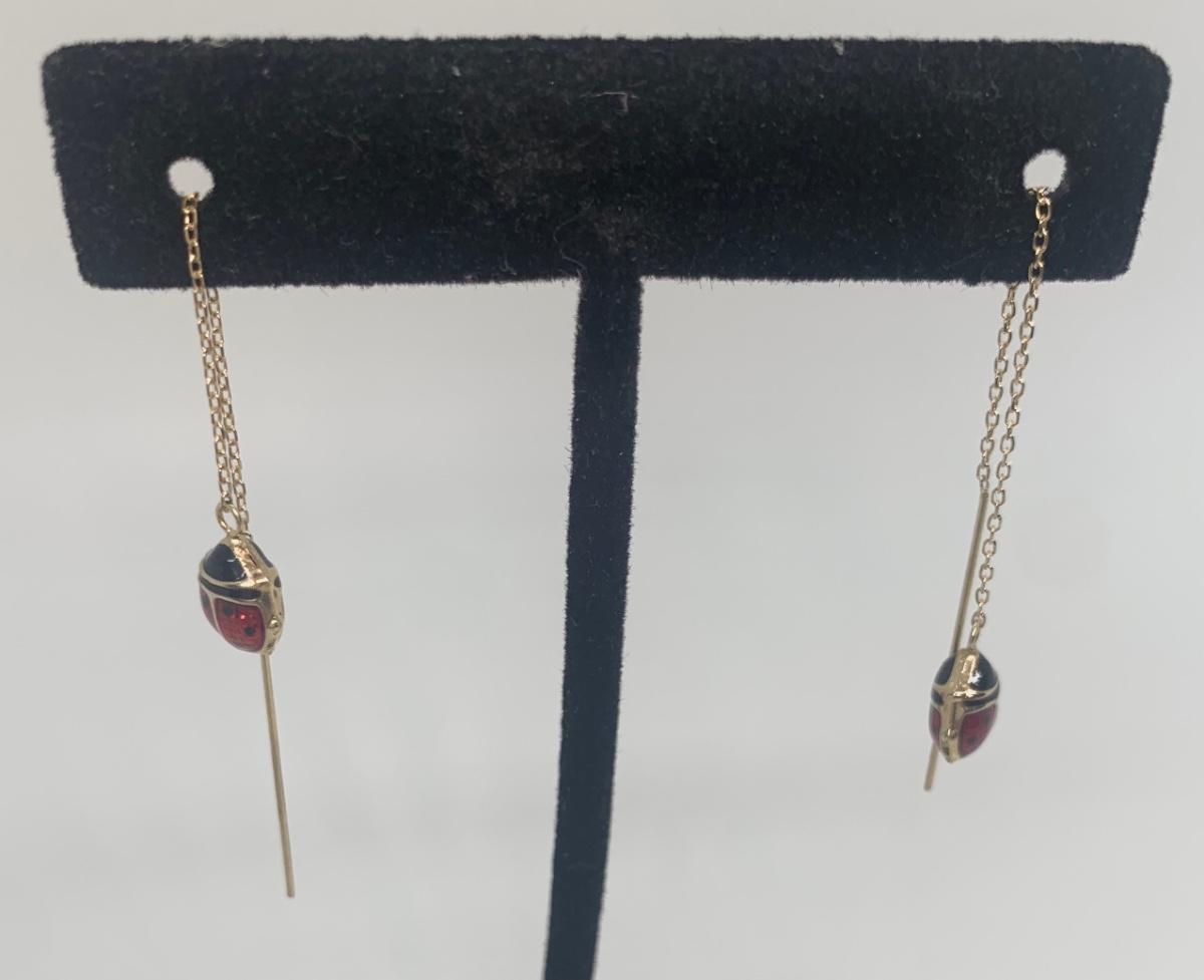 Two Pair 14k Dangle Pierced Earrings: Lady Bug & Crystal