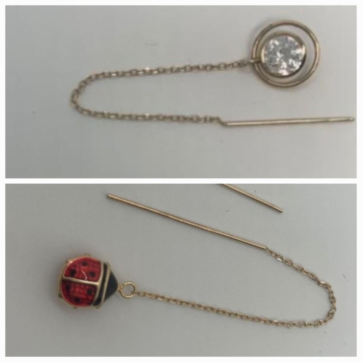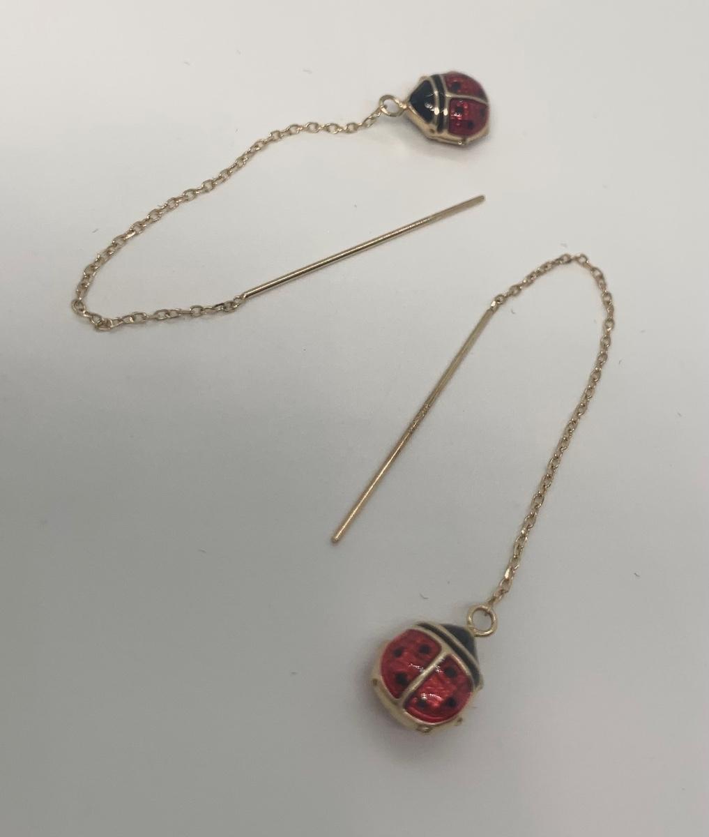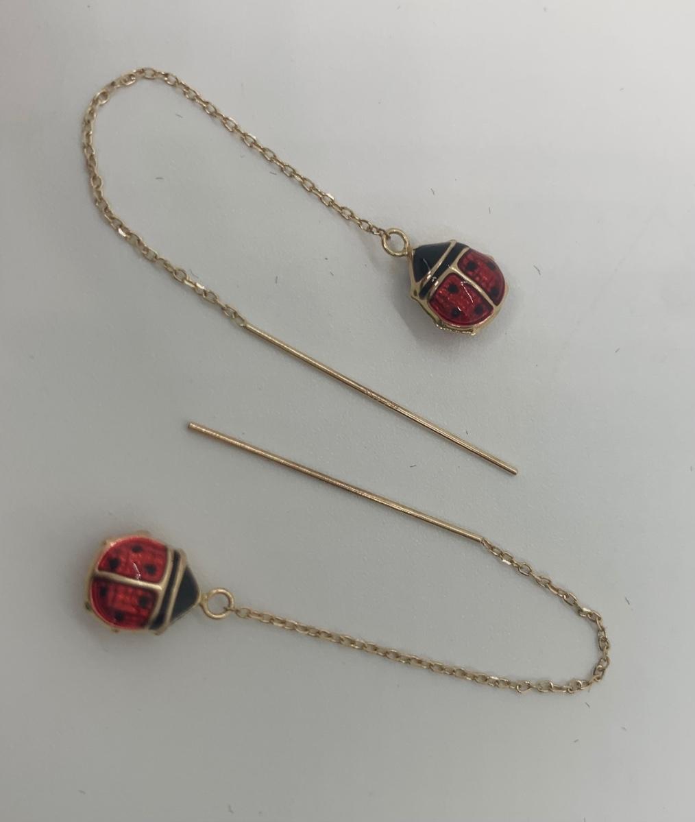 Two Pair 14k Dangle Pierced Earrings: Lady Bug & Crystal