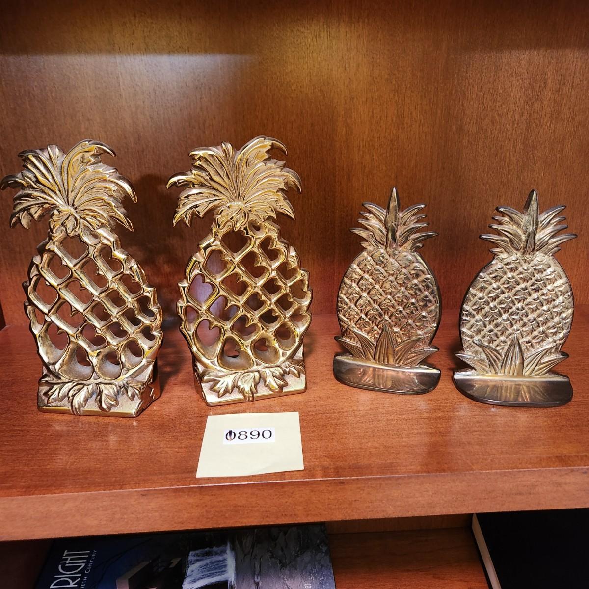 2 Pair Brass Pineapple Bookends Williamsburg Virginia Metal crafters & Gatco