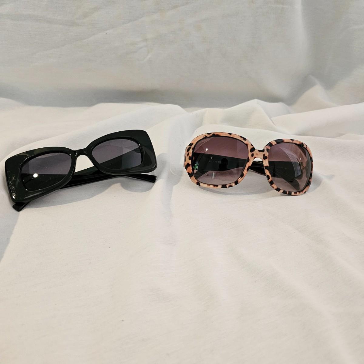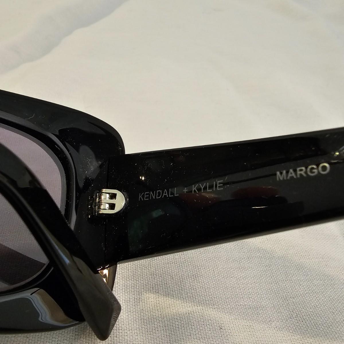 Two pairs of designer sunglasses. The black pair are by Kendall & Kylie, have wide temple pieces. 5.5" x 2"H. The tortoise shell pair are by Kate Spade, are 5.5" x 2.25"H. See photos for details. Shipping available.