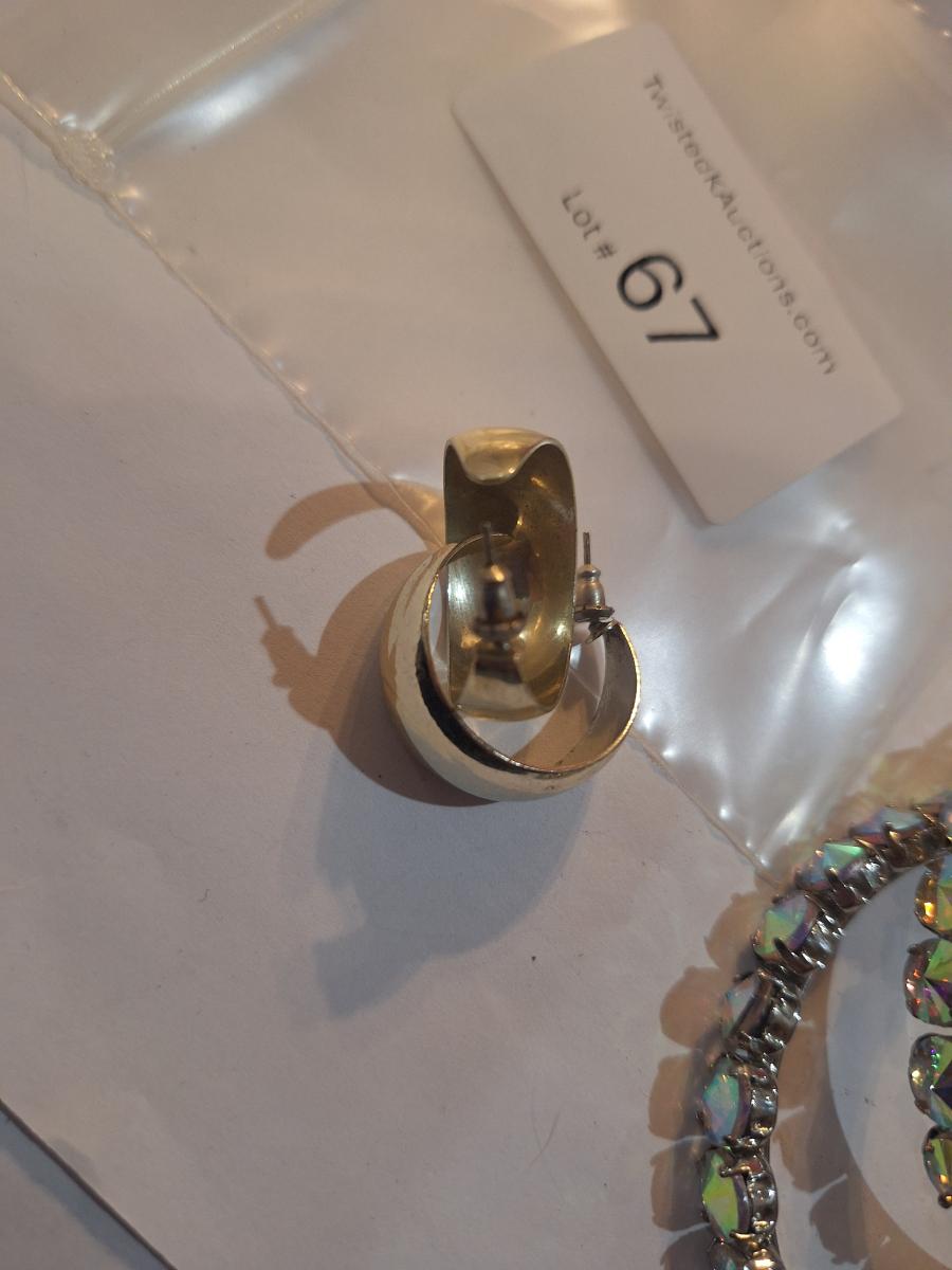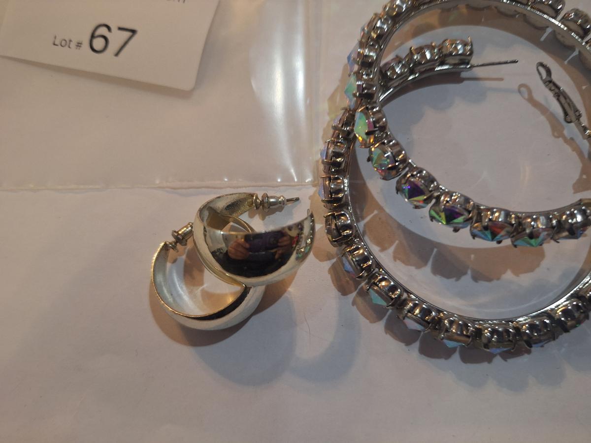 2 pair earrings 1. silver tone hoops and 2nd is vintage hoop earrings with aurora borealis crystals