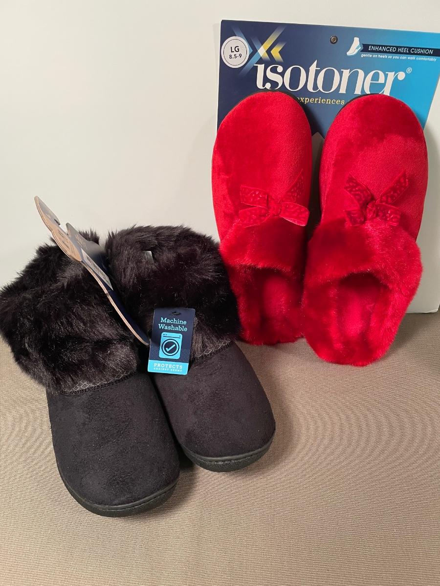 Size 8.5-9.5 in red and black styles with rubber soles.