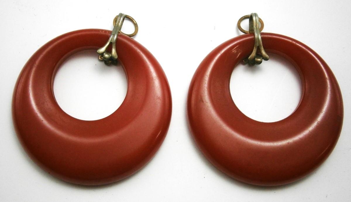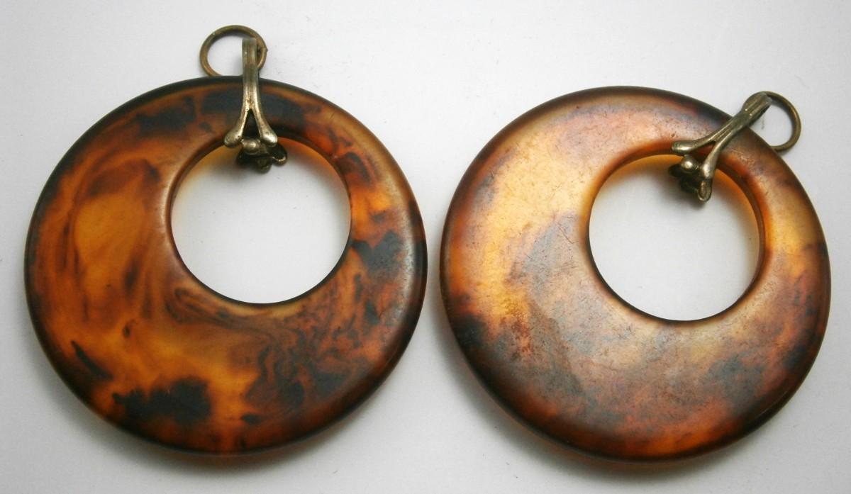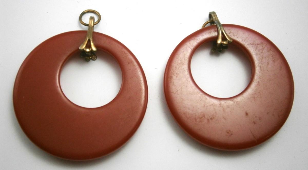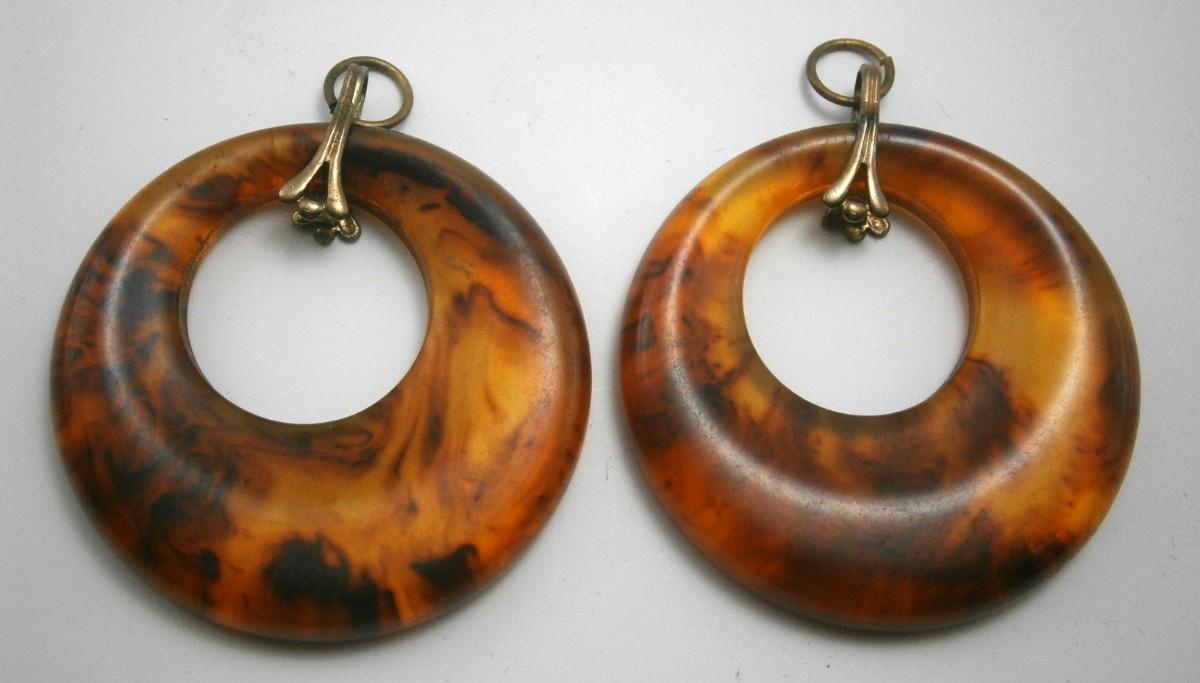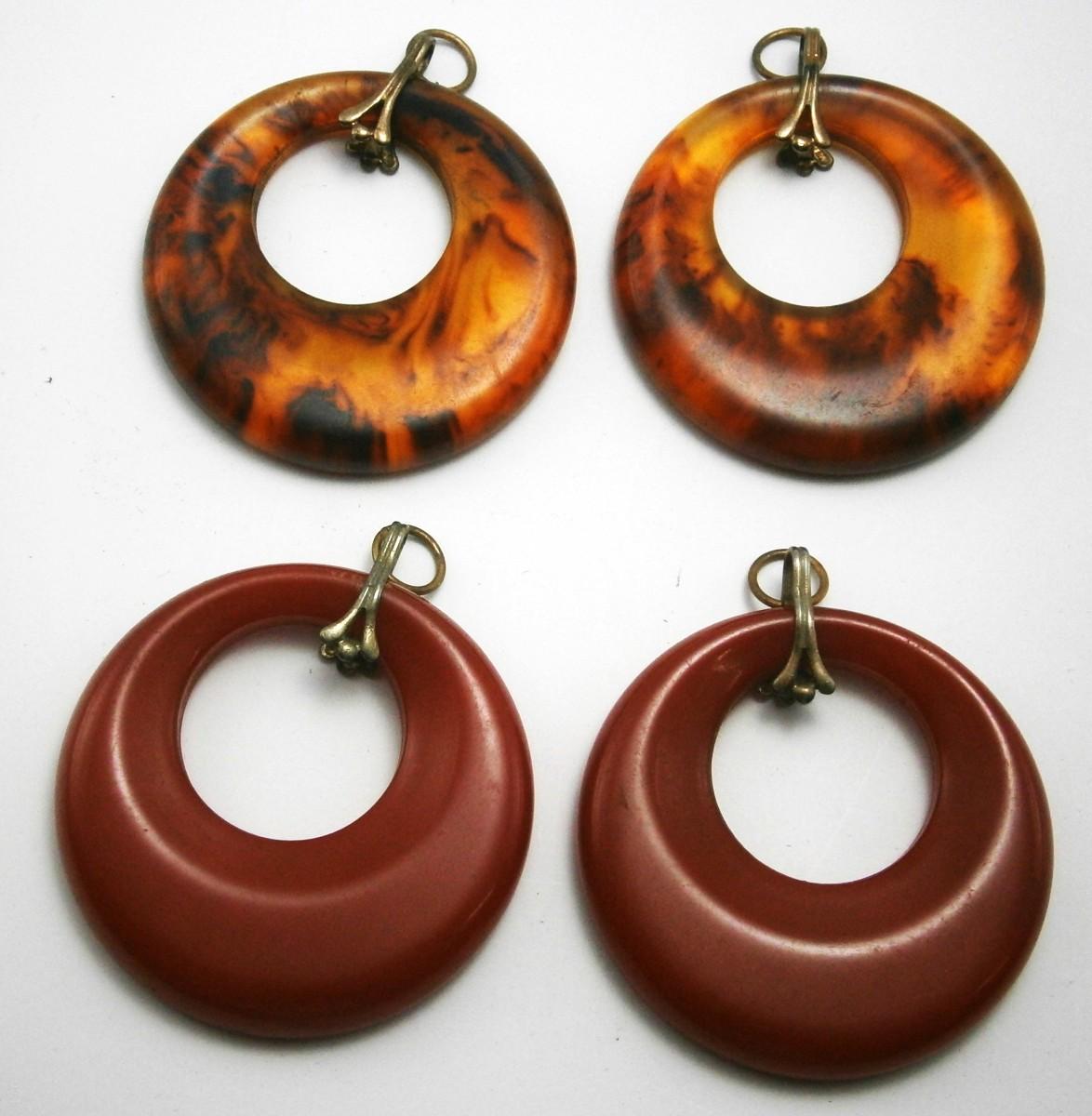2 Pair of 1930's Celluloid Earring Drops, 1 3/4 in. tall, missing ear fasteners.