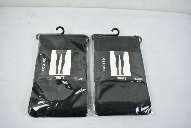 2 Pair of Black Footed Tights, One Size Fits All - New