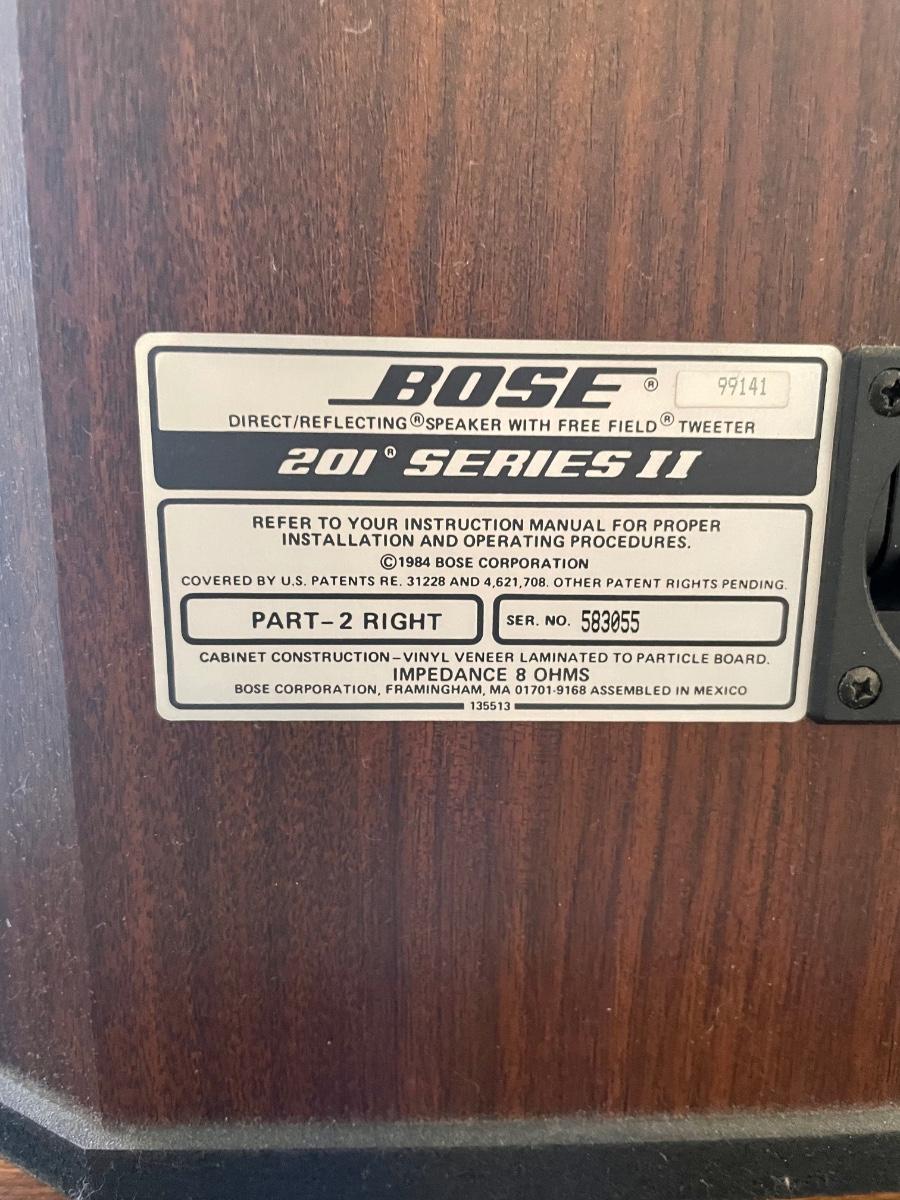 Pair of Bose Speakers. 201 Series II Left/Right Matching Pair Bookshelf Direct Reflecting Speakers: There are absolutely no issues, and they look beautiful without any rips, tears or scratches. They measure approx. 14 1/2” W, 7 3/4” D x 9” H, and weigh about 10 lbs. each. Made in USA in 1984.