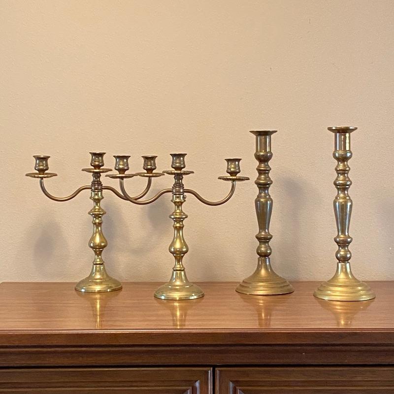 2 Pair of Brass Candelabras