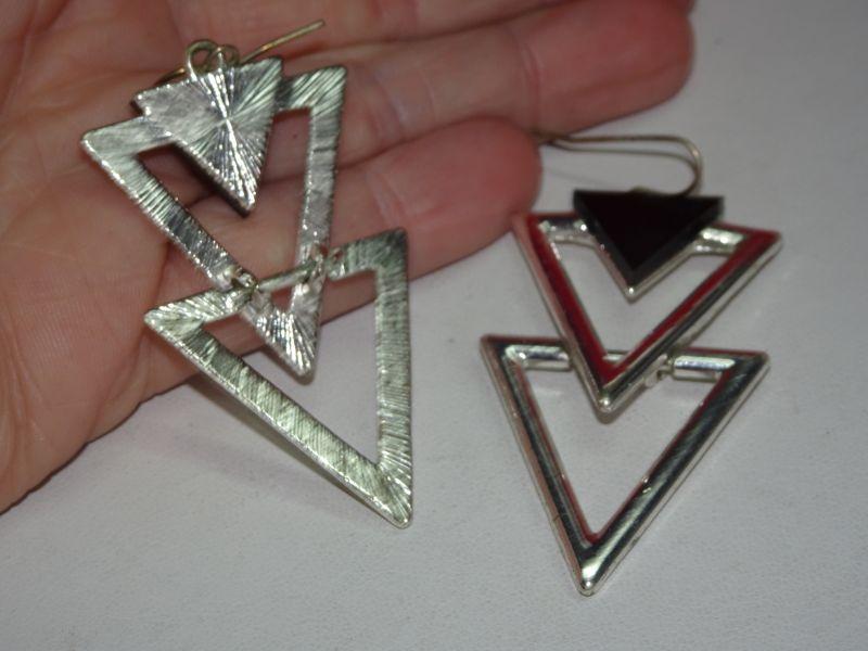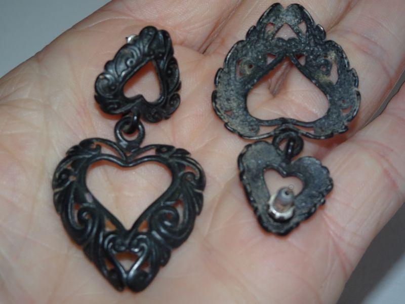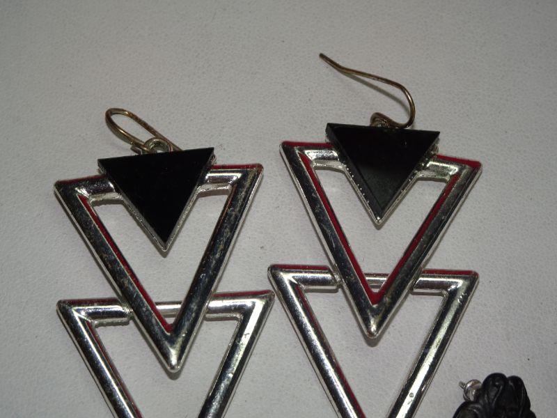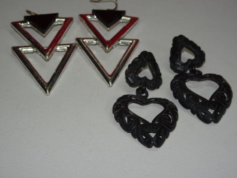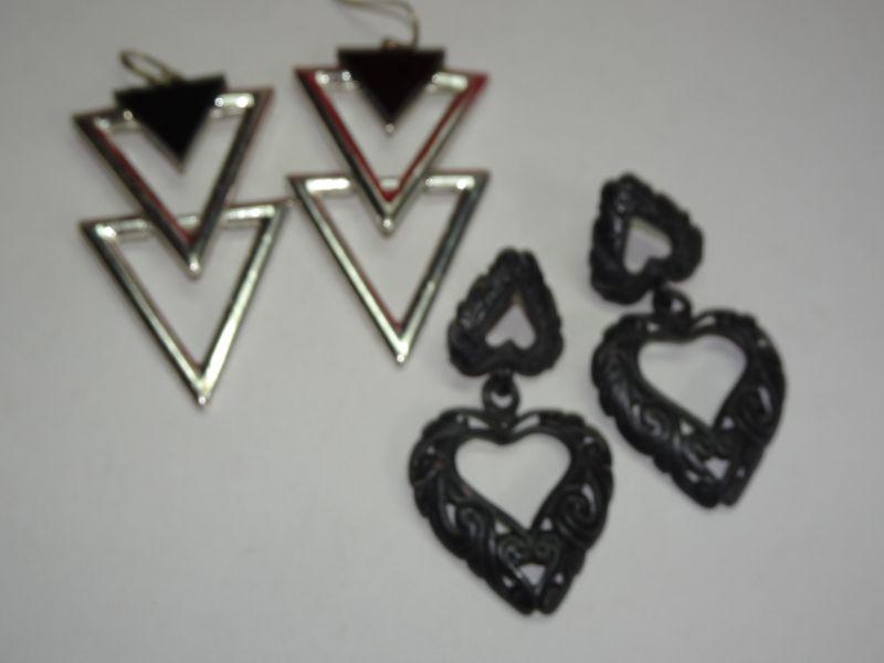 2 Pair of Earrings, Post & Hook, Black & Silver