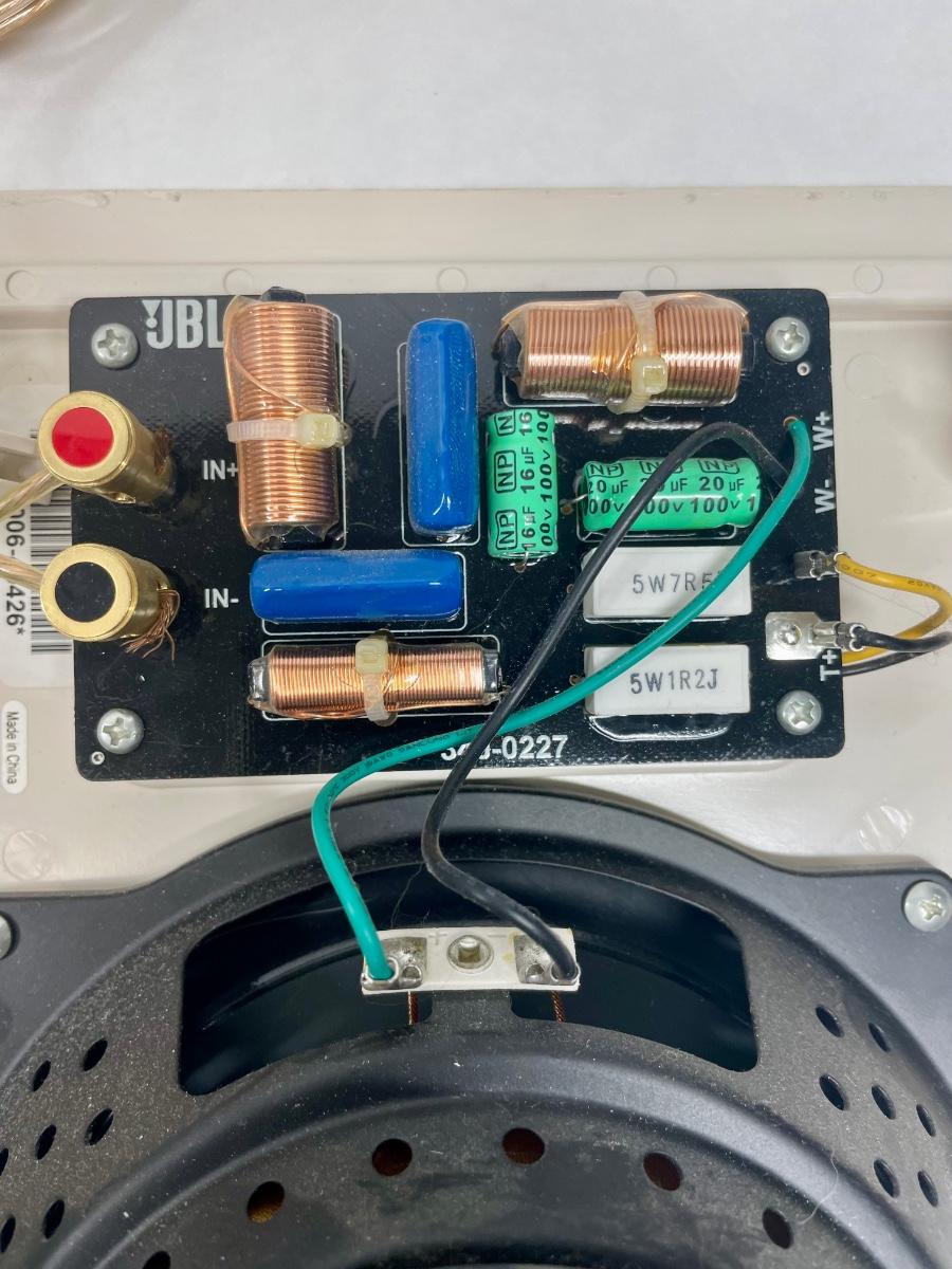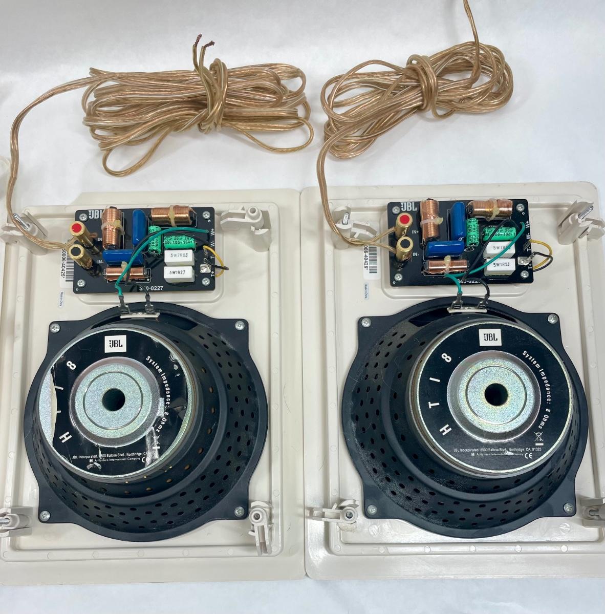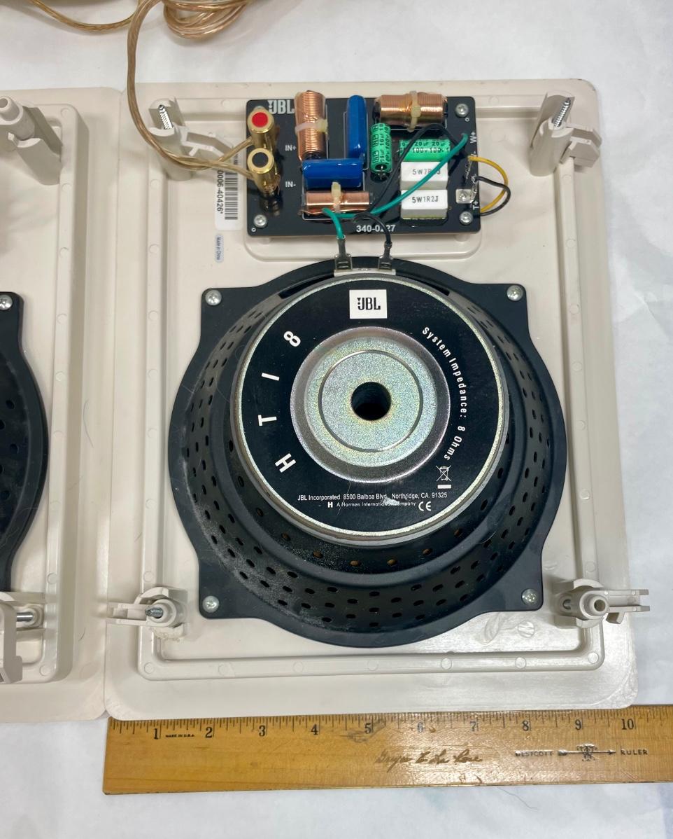 2 Ambiance 82 by Cambridge Sound Works and 2 JBL HTI8 speakers. They speaker grates they are attached to measure 14"x10” and 13”x10”. Untested, but appear to be undamaged and in working condition.