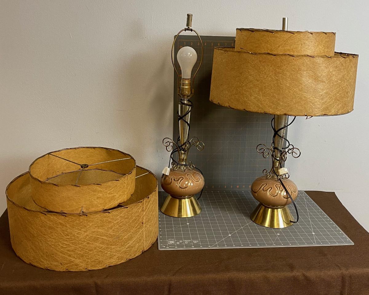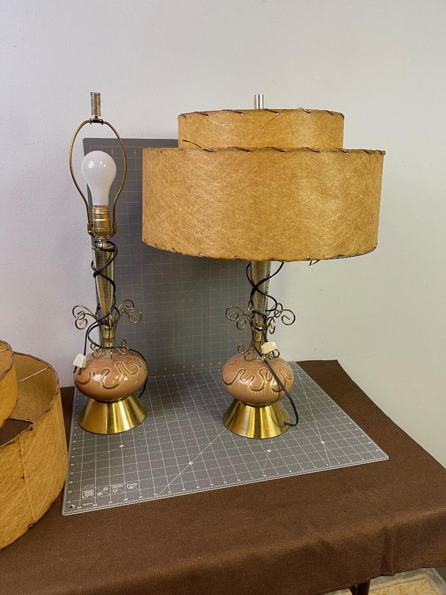 #2 Pair of Lamps Mid-Century Fiberglass Shade Table Lamp
