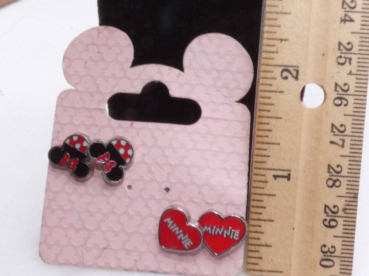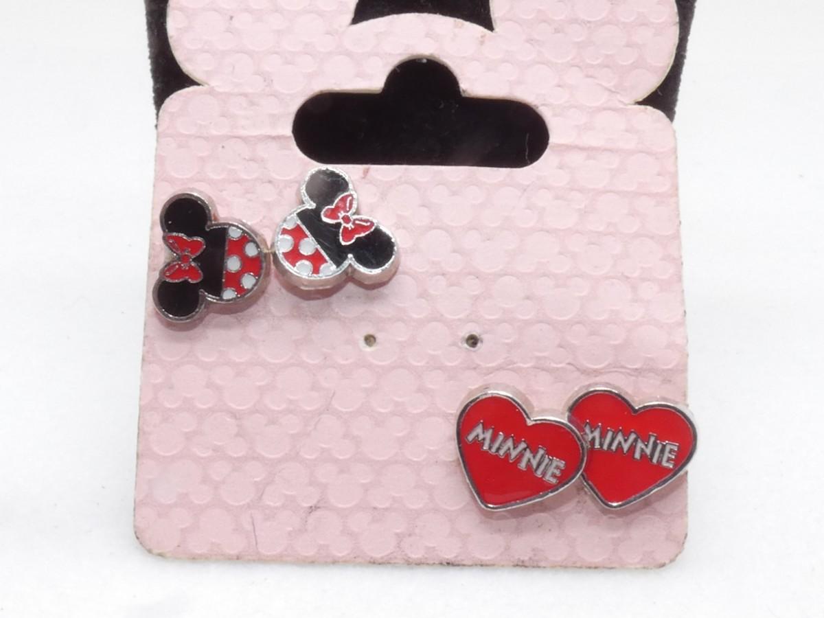 2 Pair of Mini Mouse, Heart Post Earrings