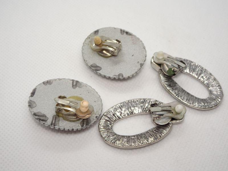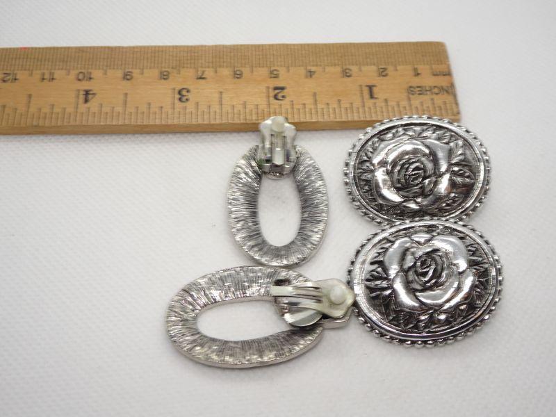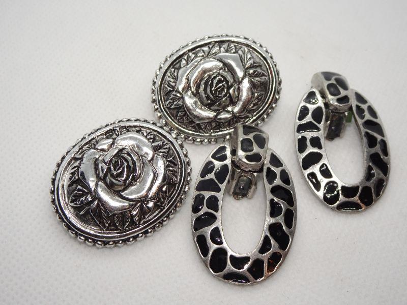 2 Pair of Silver Tone Clip Earrings, Roses & Leopard Print