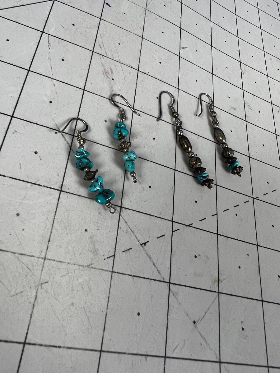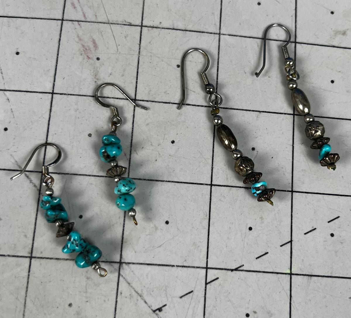 2 pair of Turquoise and Silver Dangle Earrings