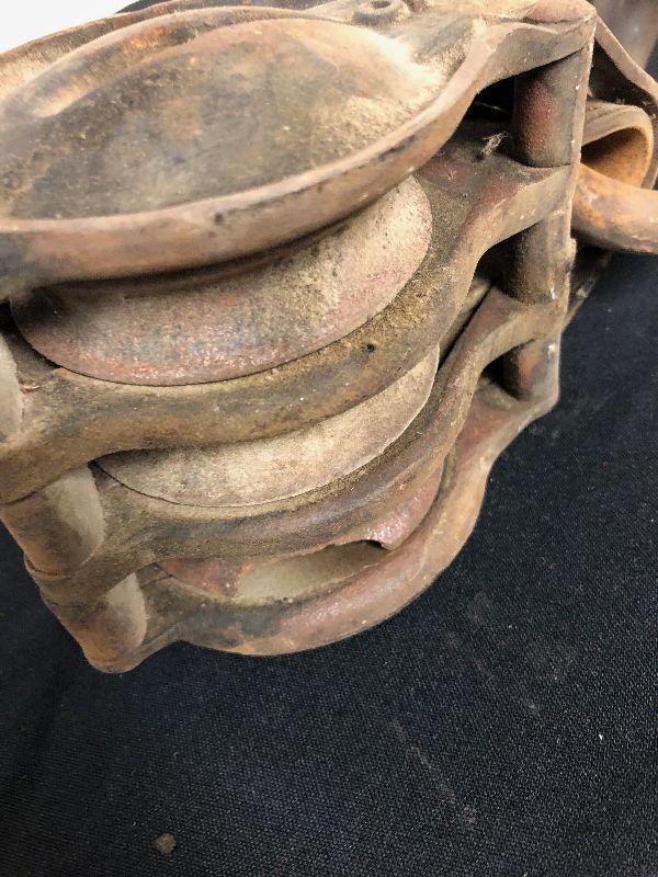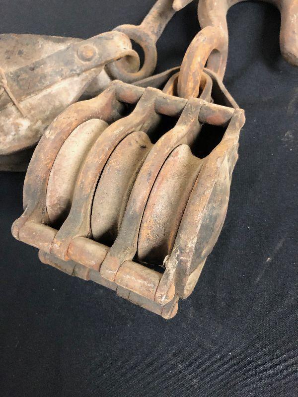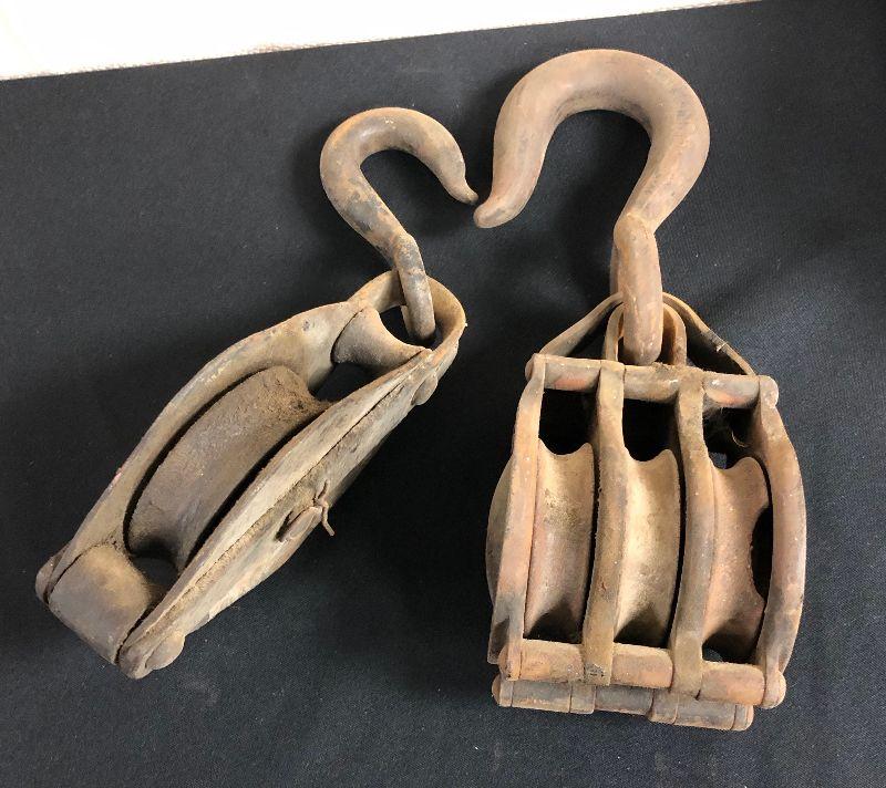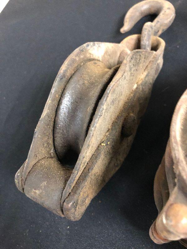 2 pair of vintage block and tackle pulleys
