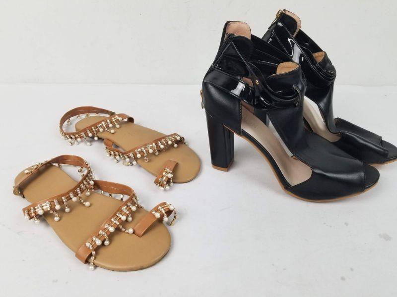 2 Pair of Women's Shoes, Size 9.5 - Sandals, Heels