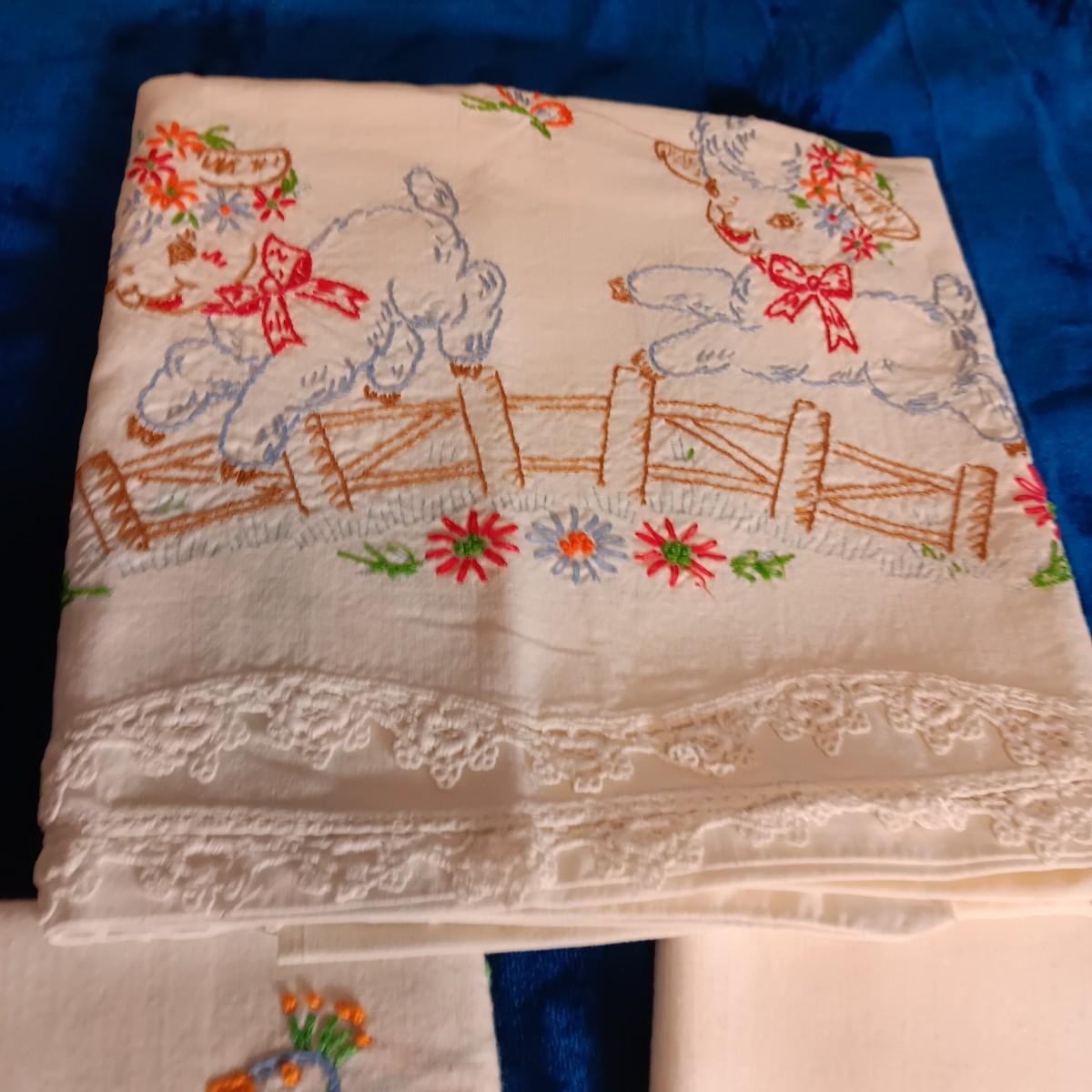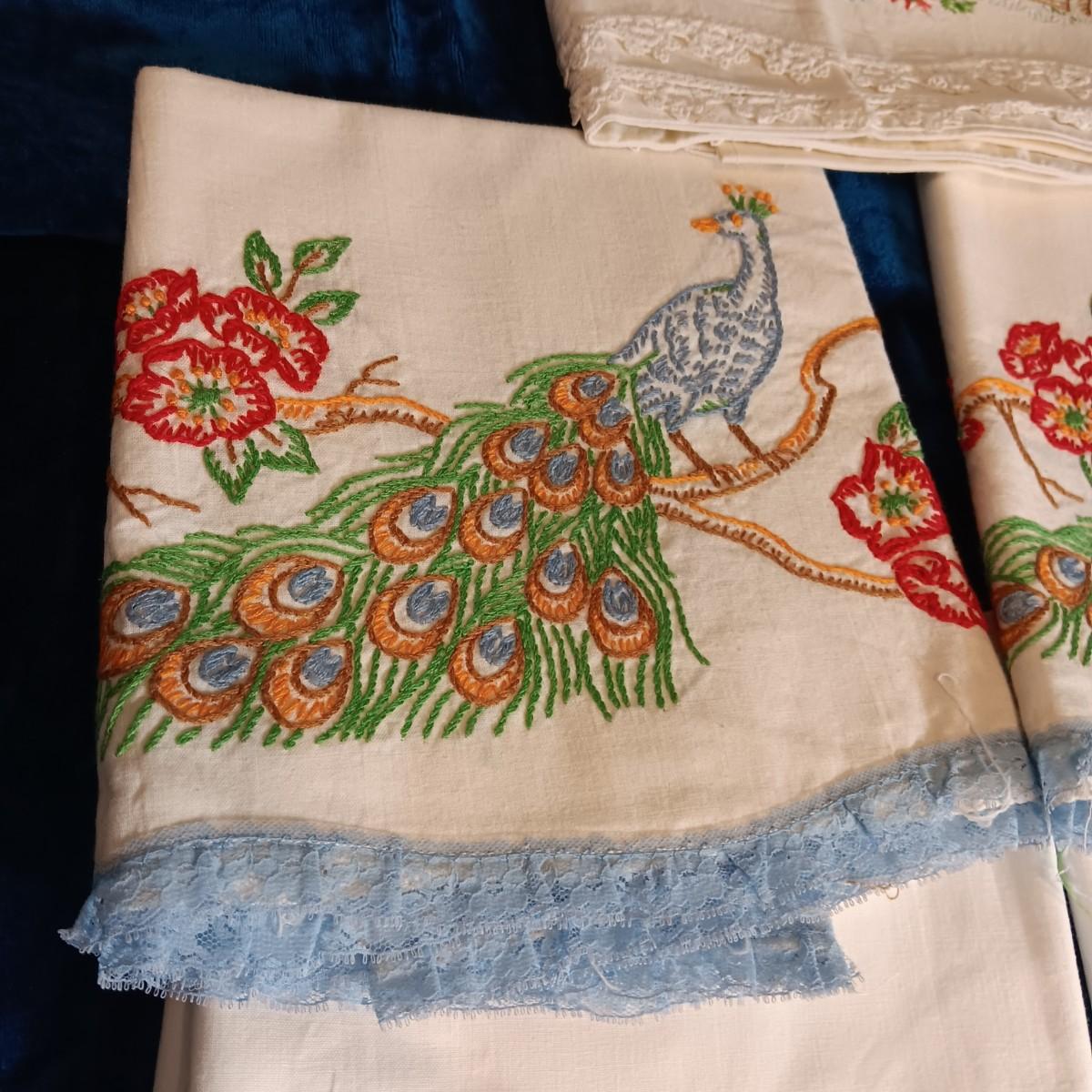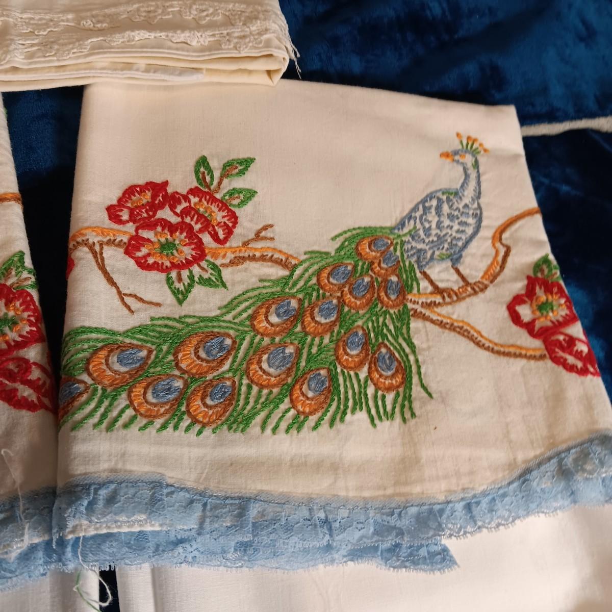 2 PAIRS AND A SINGLE HAND EMBROIDERED PILLOW CASES