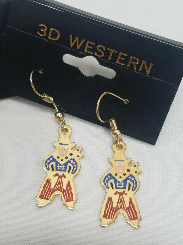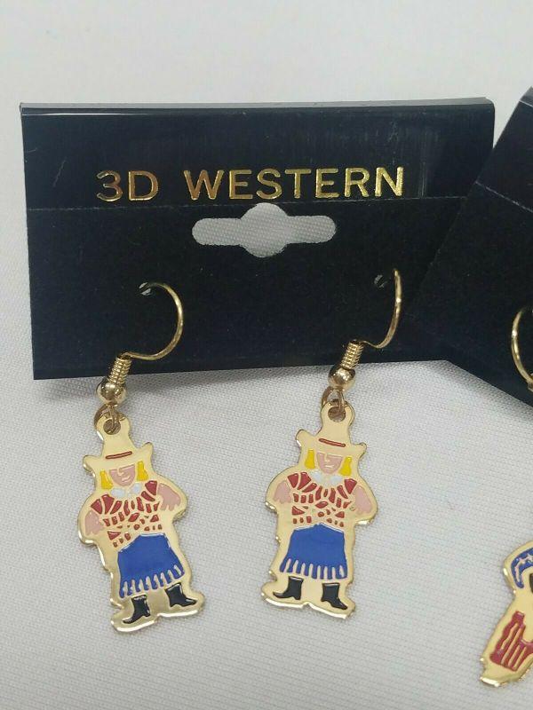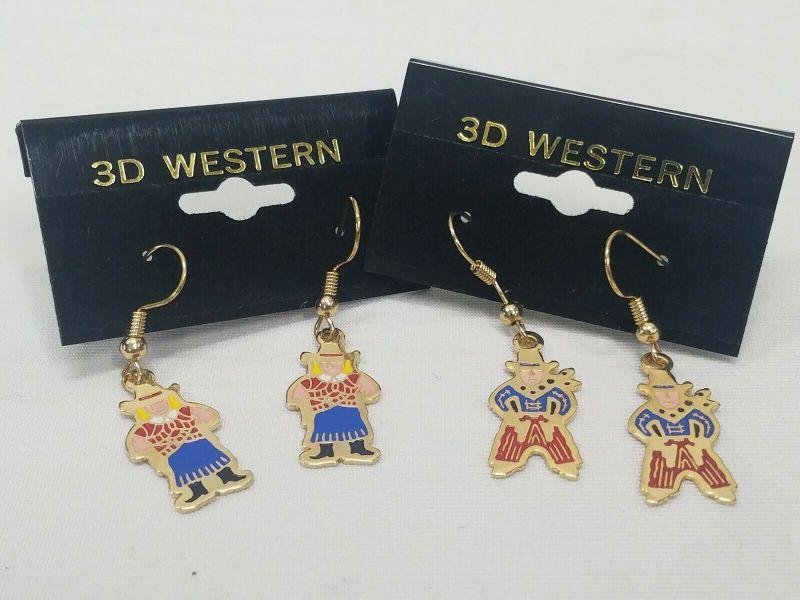 2 Pairs Earrings: Cowboy & Cowgirl Gold-Colored Hook Earrings by 3D Western