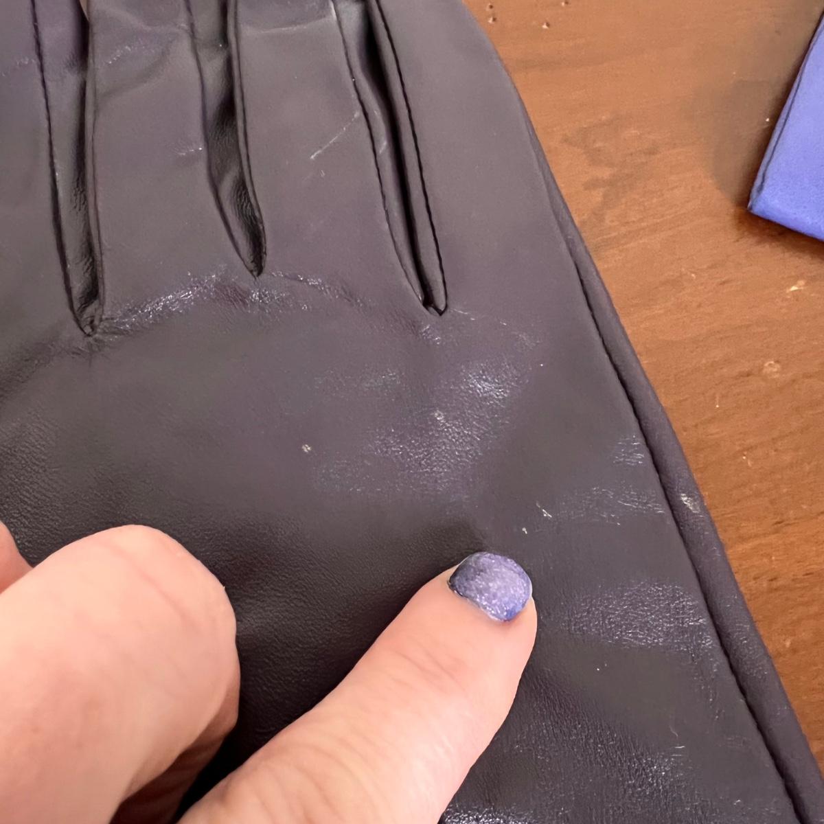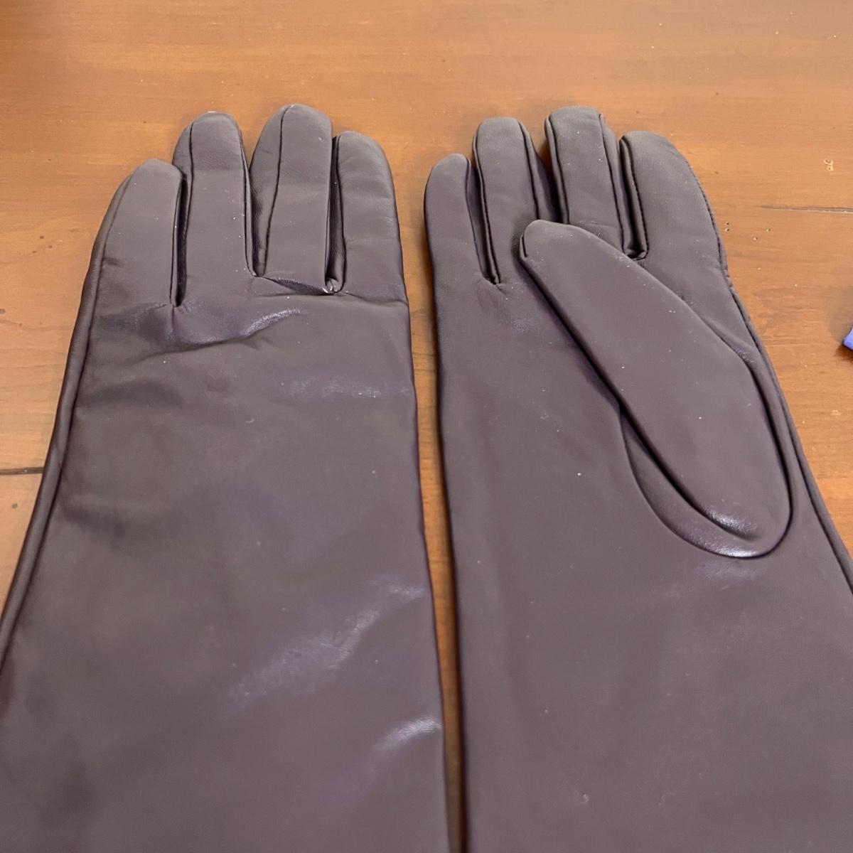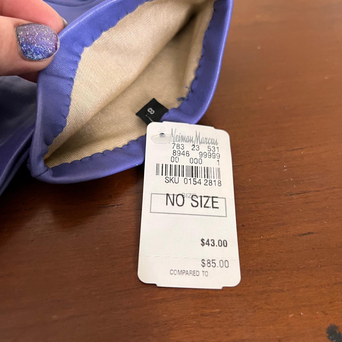 Bright purple pair of leather gloves are buttery soft. New with tags from Neiman Marcus. Pristine condition. Maroon Purple pair are gently used in very good condition. Some slight marks as shown in pictures. Might be able to be cleaned away. Fingertips are not worn.