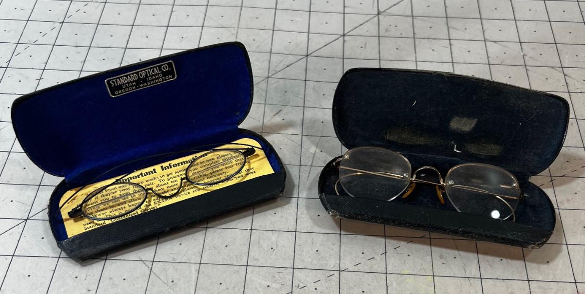 2 pairs of Antique Eye Glasses with cases one pair is Gold Filled.
