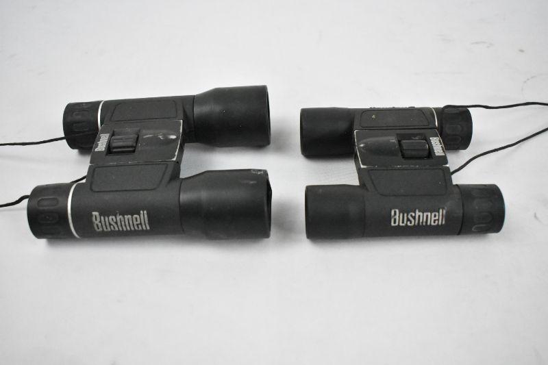 2 Pairs of Bushnell Binoculars: 10x25 & 16x32